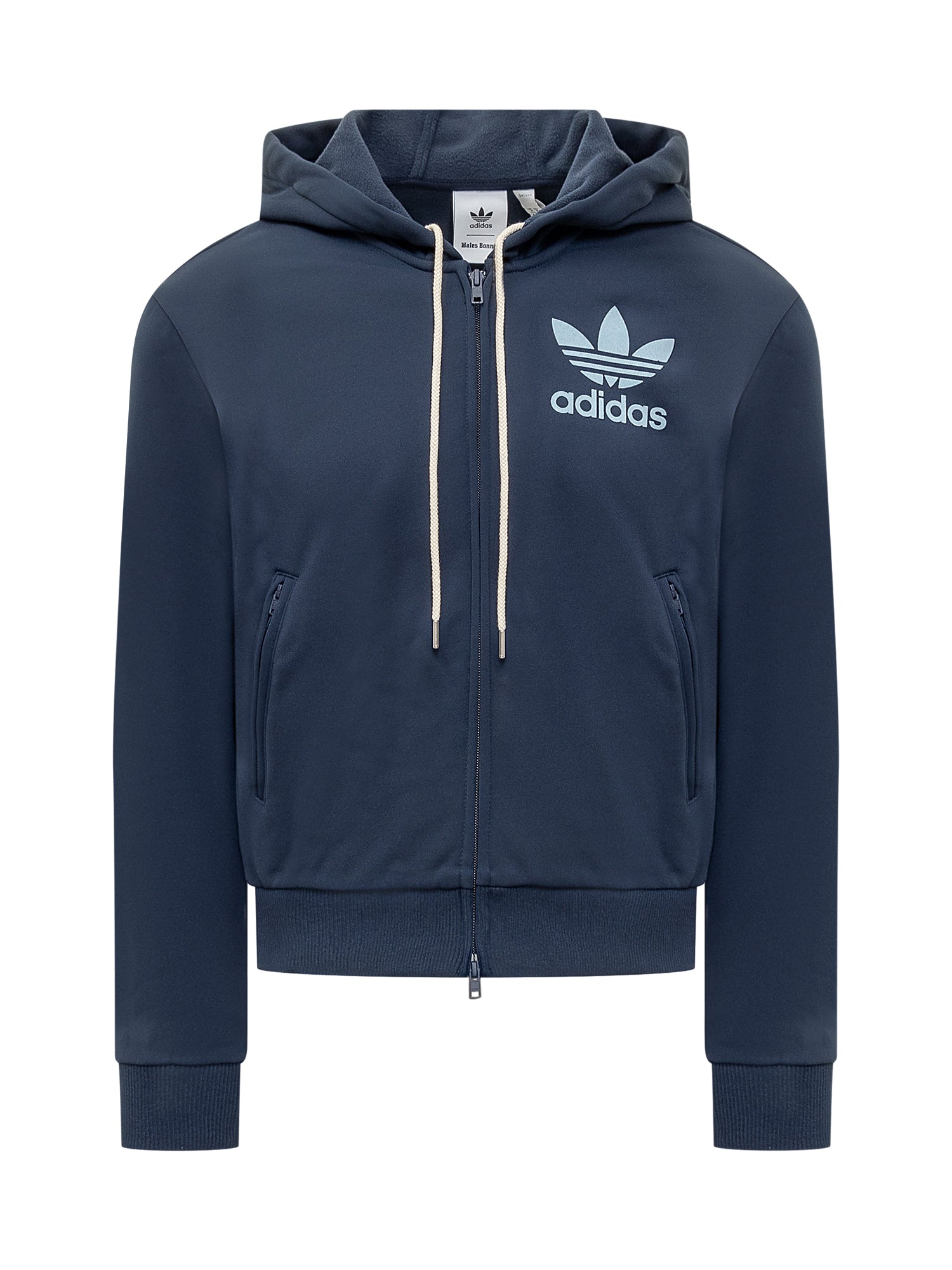 Sweatshirt with hood and drawstring. Zipper closure. Elasticized hems. Two pockets. Logo on front and back of neck.