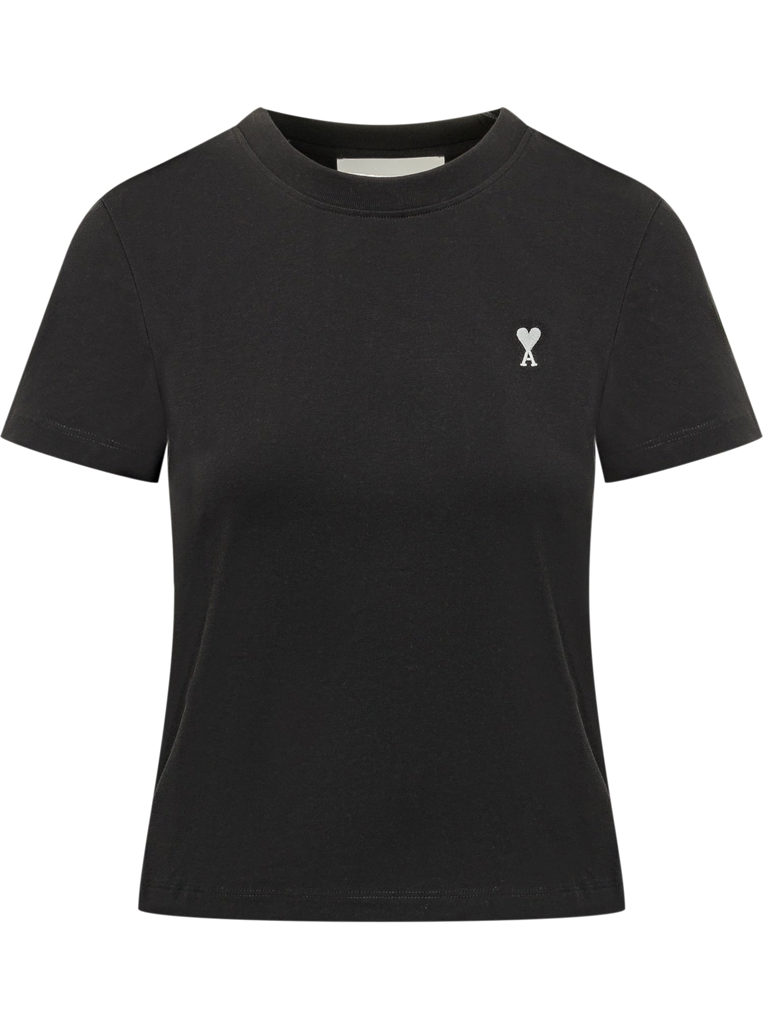 Cropped crew-neck T-shirt with Ami de Coeur logo on the chest. Modern fit.