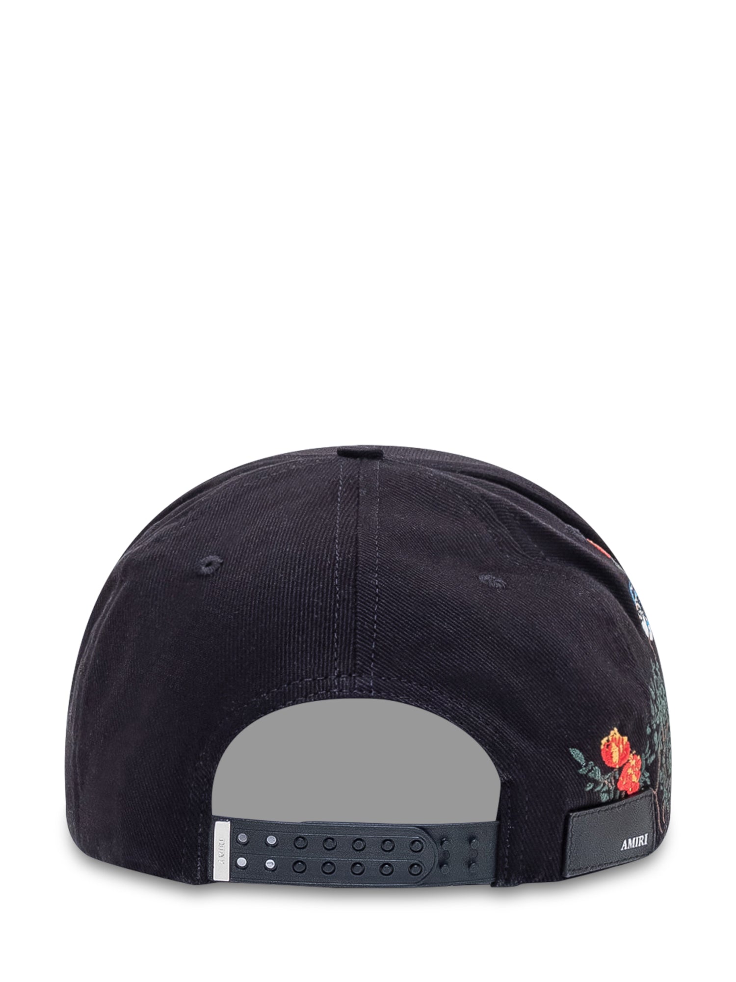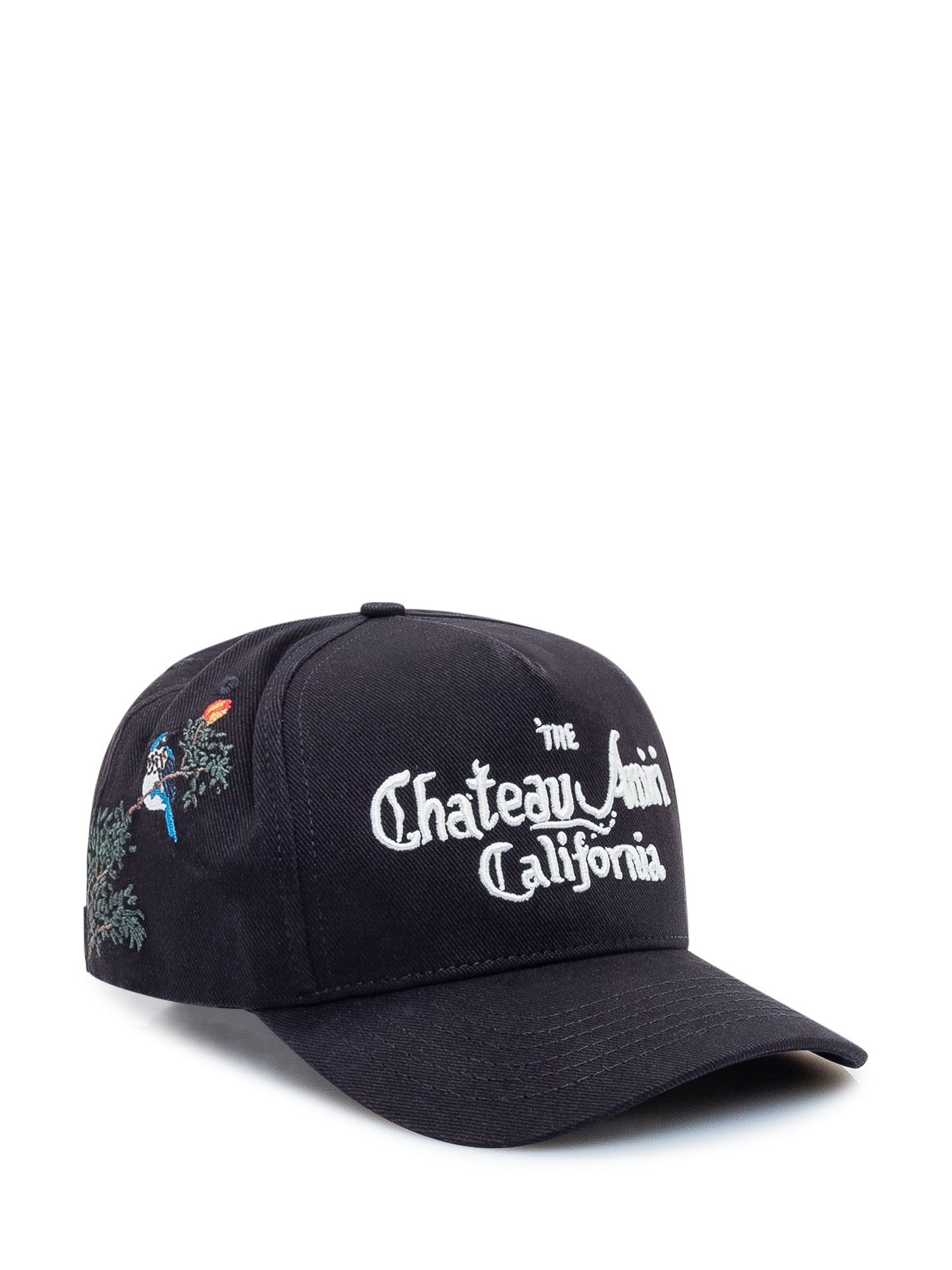 Cap with curved visor and panel construction. Front embroidery with Chateau Amiri lettering.
