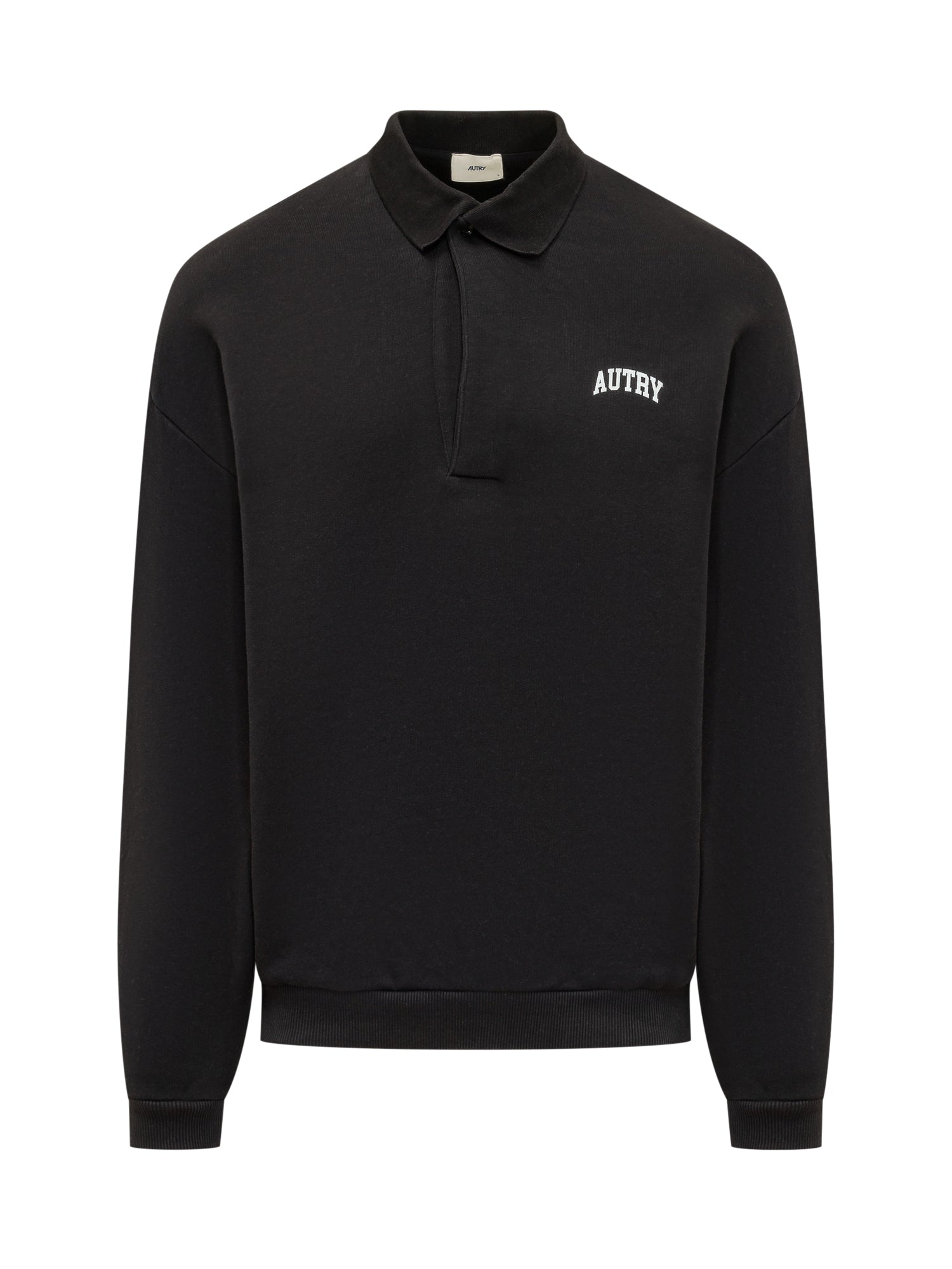 Sweatshirt with polo collar and concealed button closure. Style with long sleeves and visible front logo, ribbed hem and cuffs for a defined and clean silhouette.