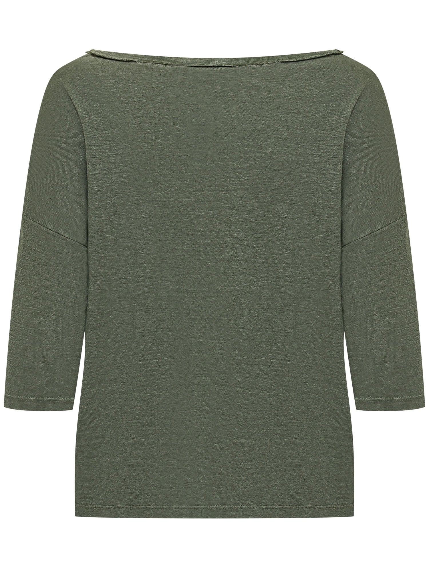 Wide neck top with three quarter sleeves and dropped shoulders. Lightweight structure with relaxed line and straight hem. Clean design suitable for everyday looks and layering.