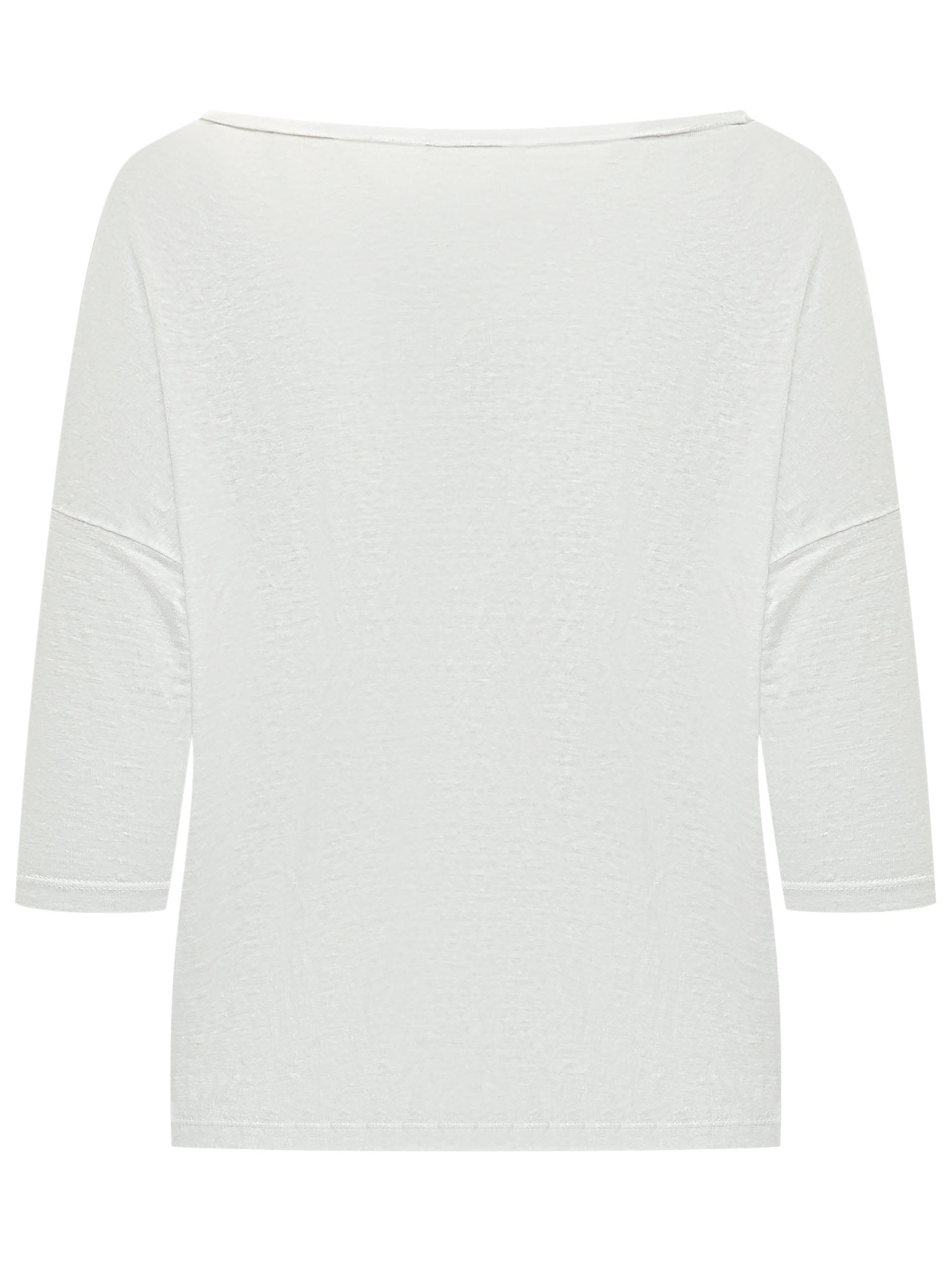 Wide neck top with three quarter sleeves and dropped shoulders. Lightweight structure with relaxed line and straight hem. Clean design suitable for everyday looks and layering.