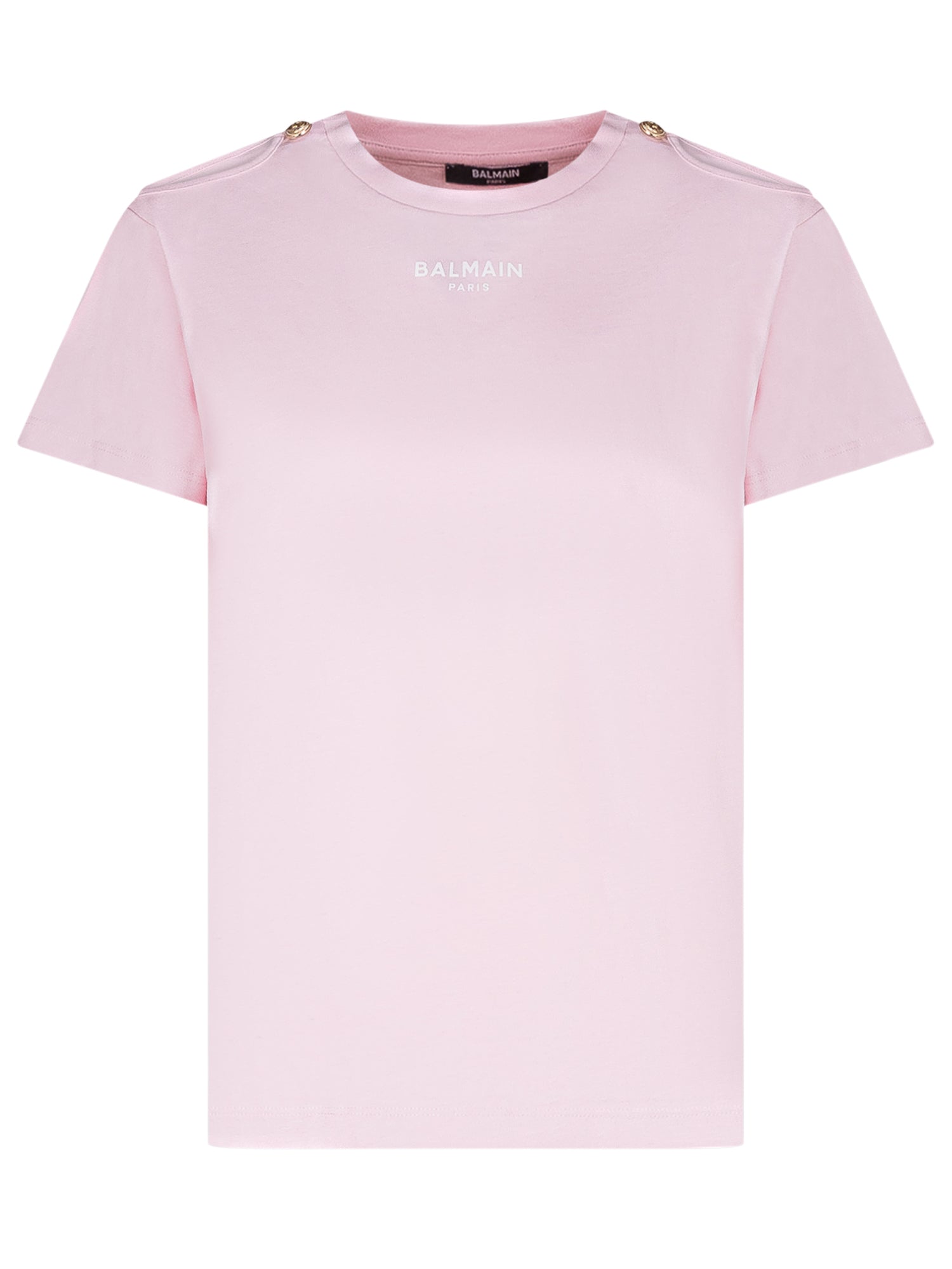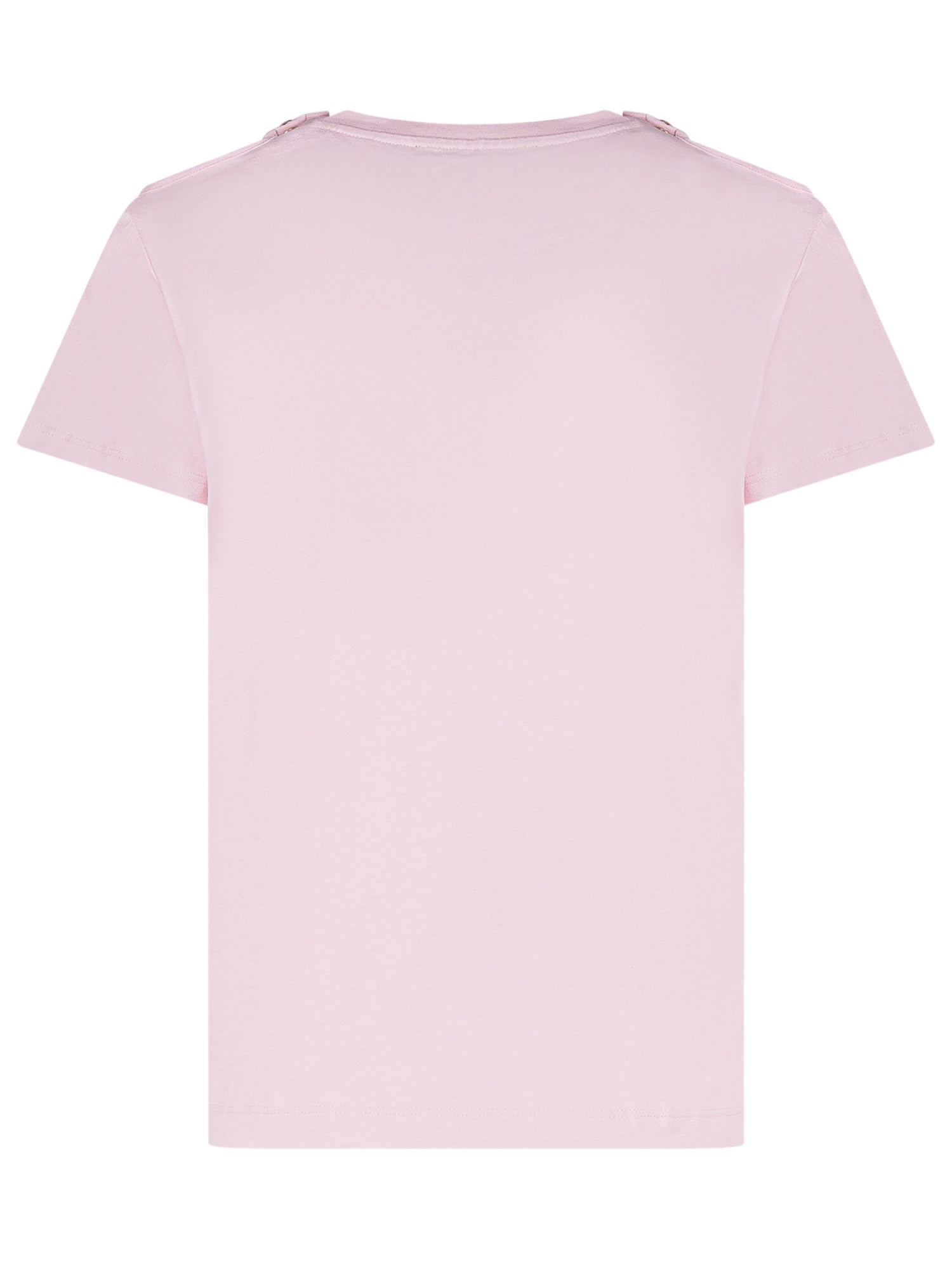 T-shirt with crew neck and short sleeves. Contrasting front logo and decorative buttons applied on the shoulders. Straight cut and clean design, ideal for a contemporary and distinctive look.
