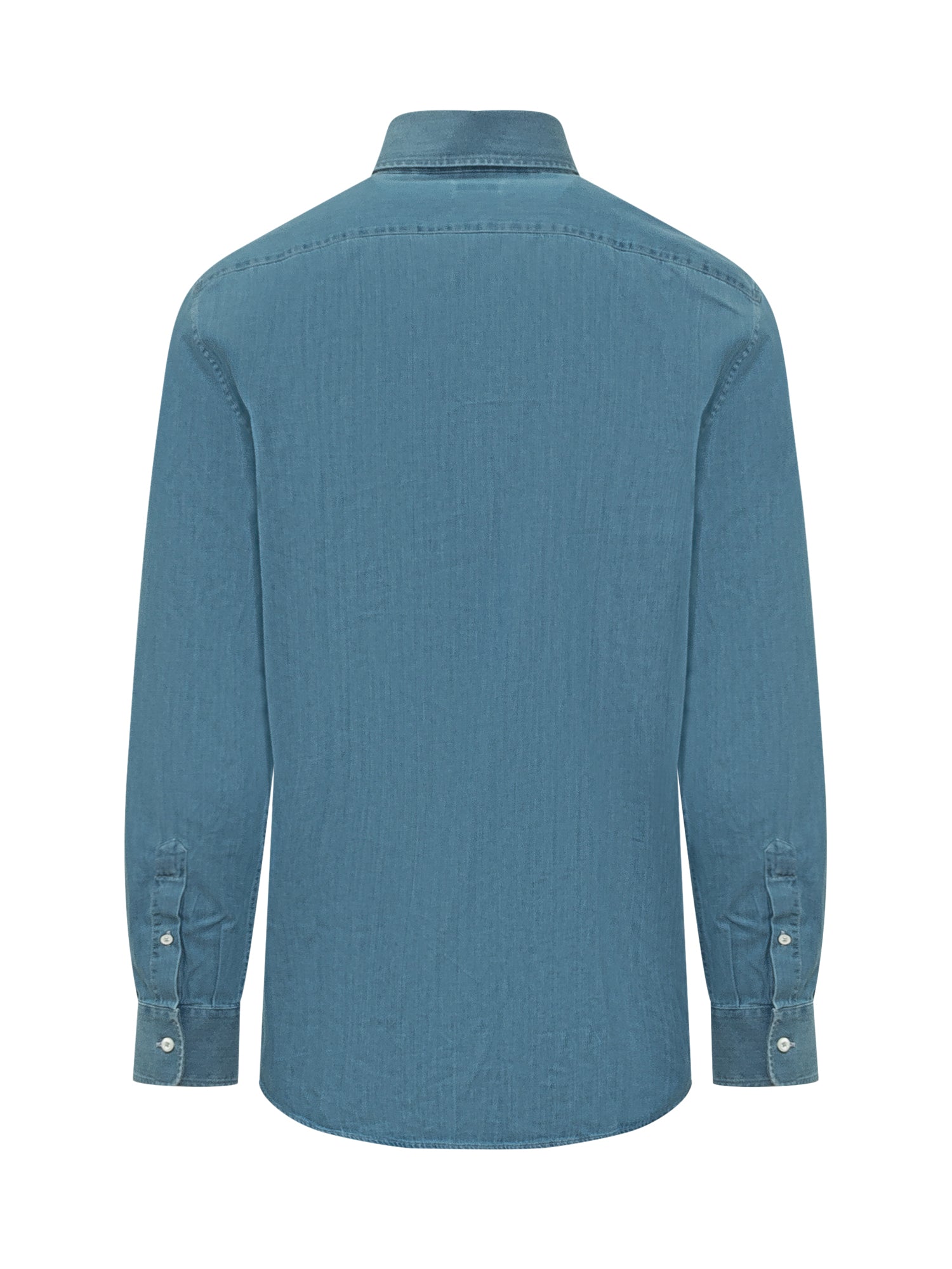 Denim shirt with long sleeves, classic collar, button closure, adjustable cuffs, regular fit.