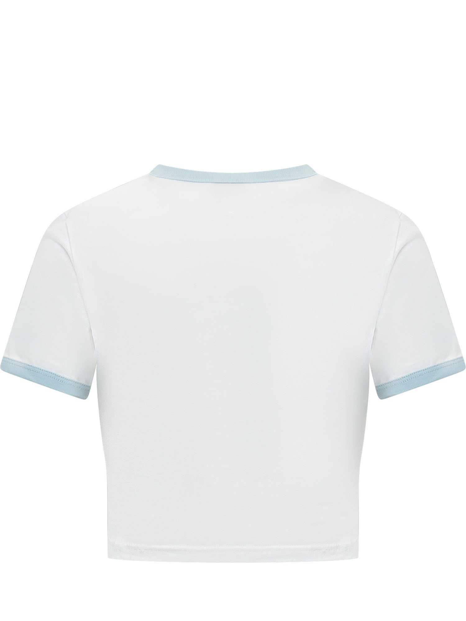 Cropped T-shirt with contrast trim, front graphic print and short sleeves