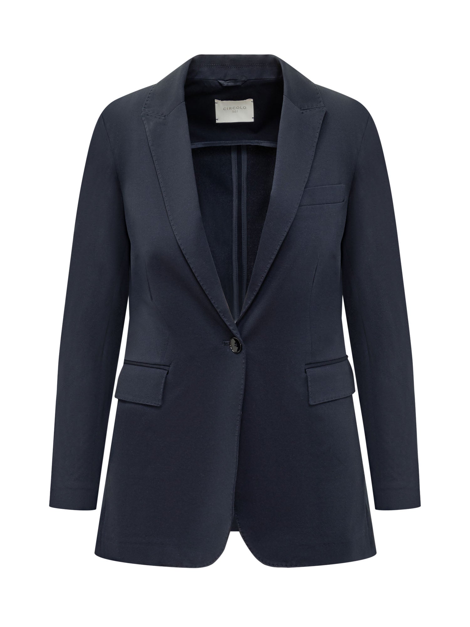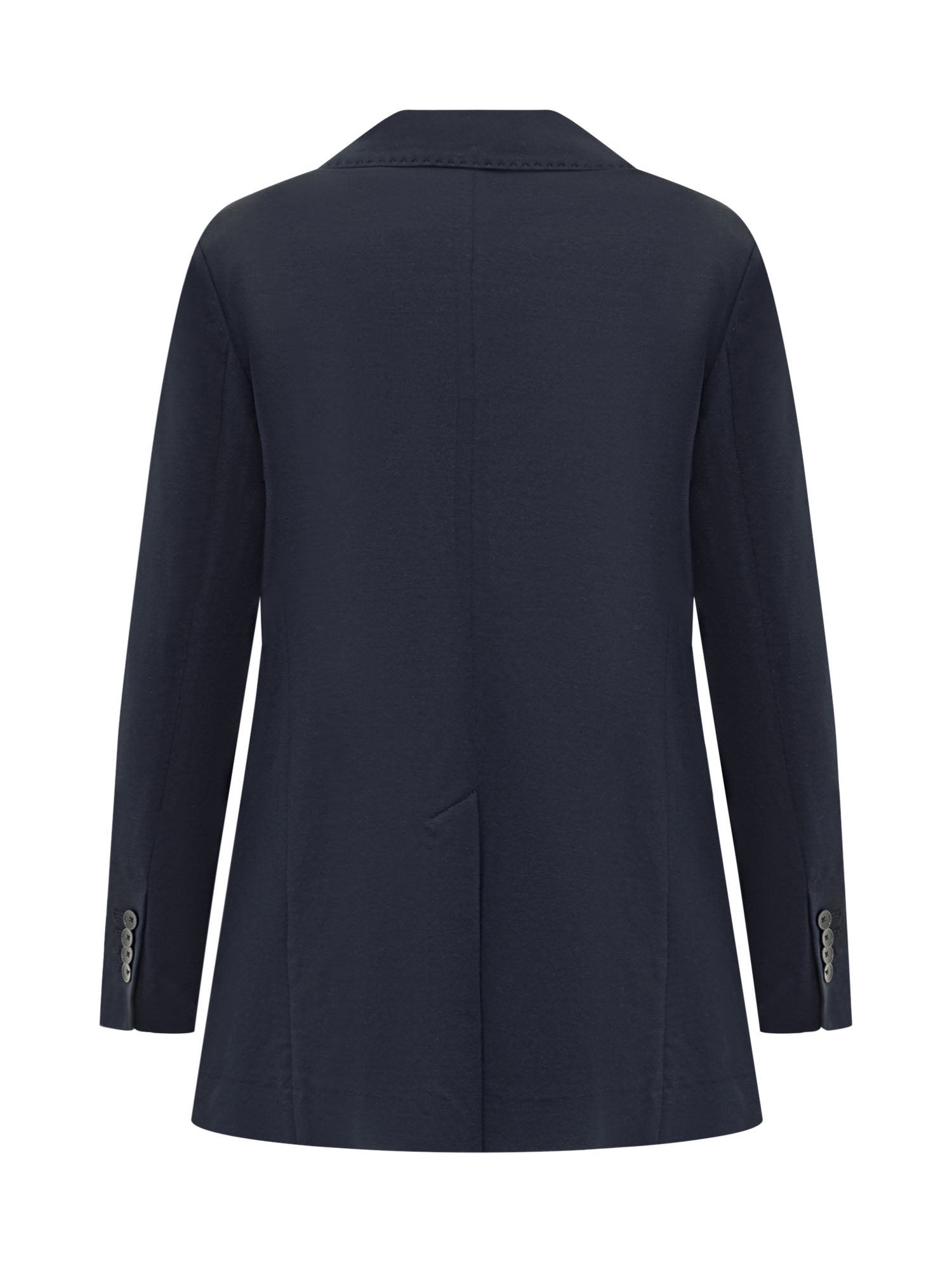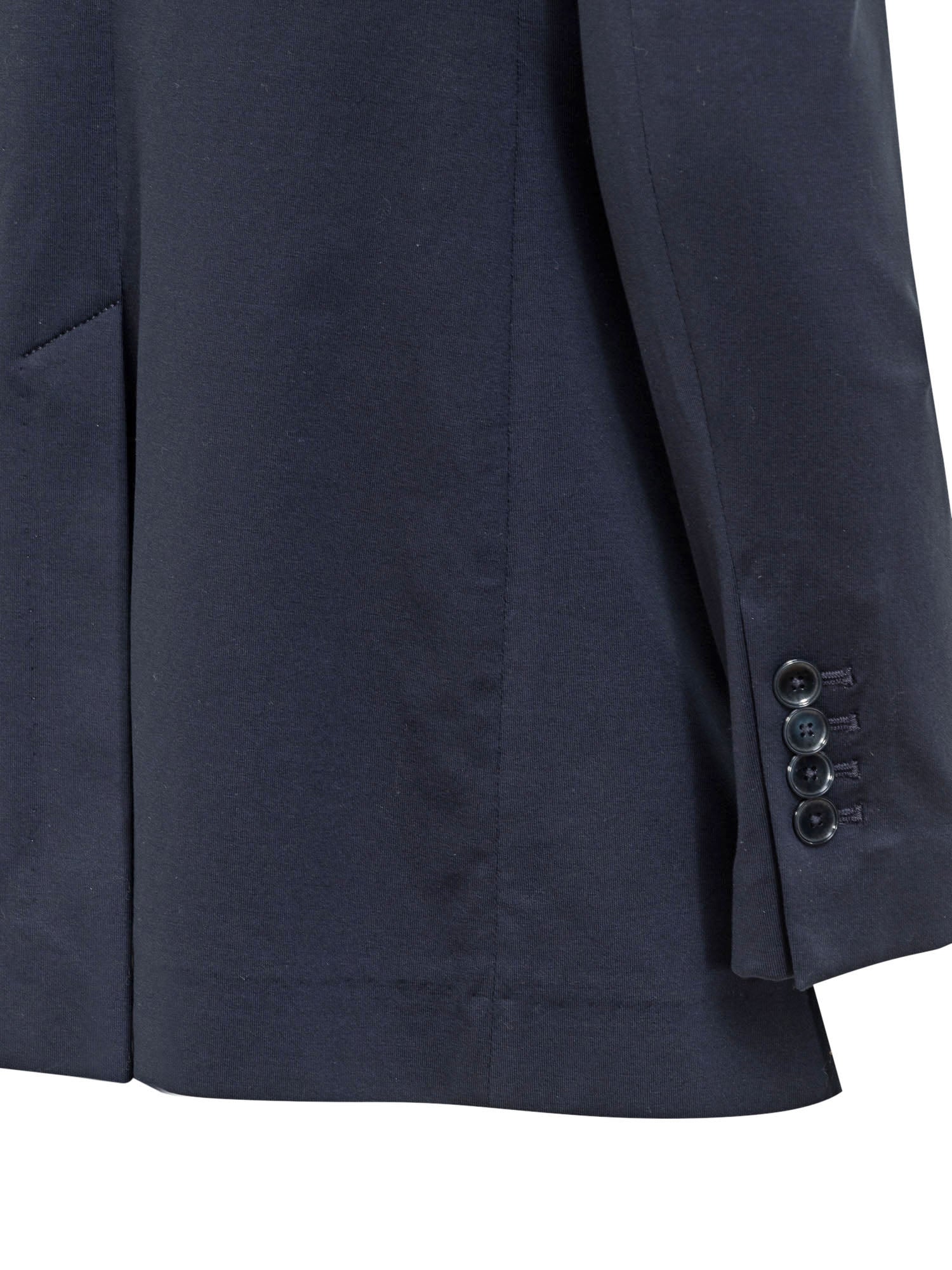 Long-sleeved single-breasted blazer made of cotton blend. V-neck. Button closure. Button cuffs. 3 pockets.