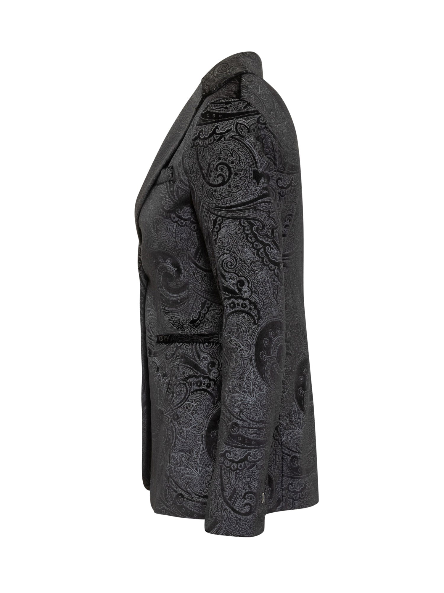 Circolo blazer in black jacquard fabric with refined paisley motif. Tailored and modern cut.
