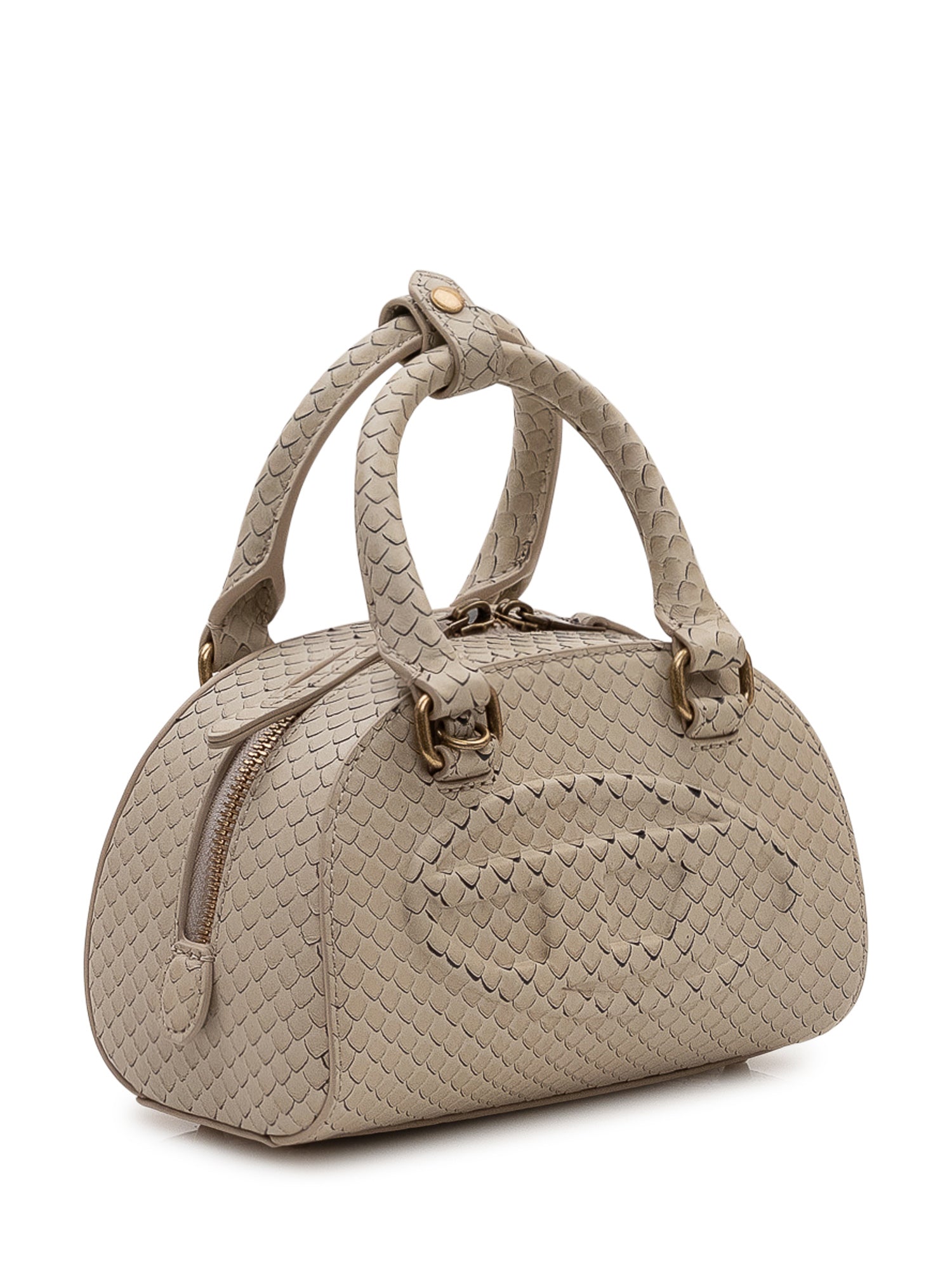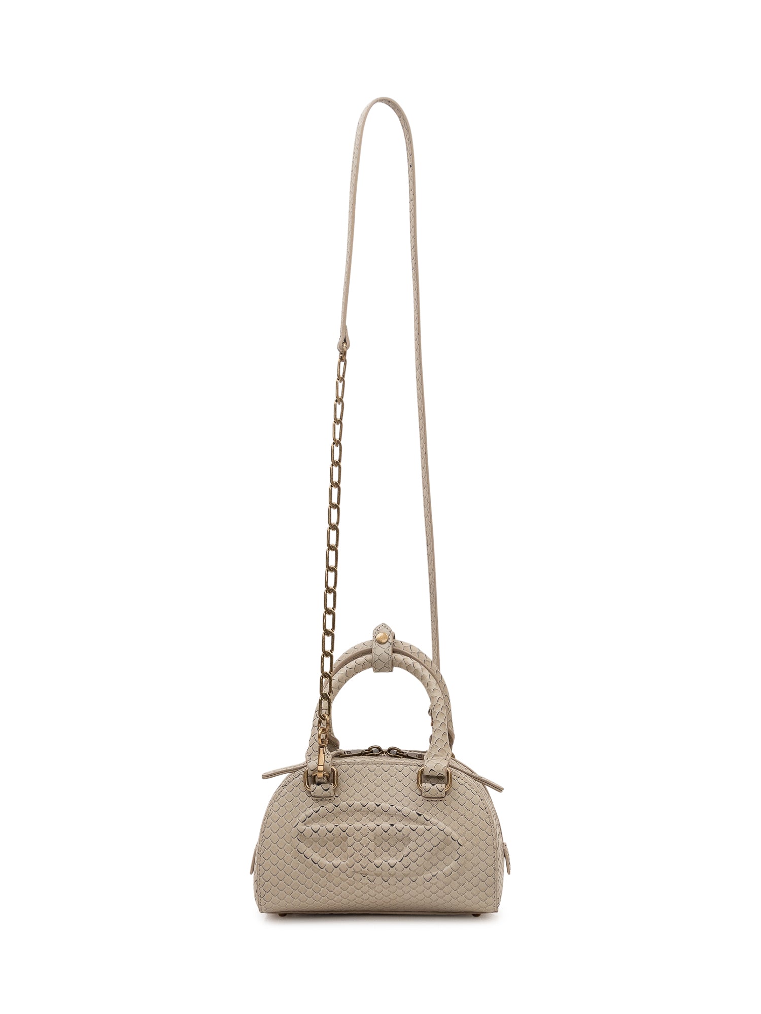 1DR Dome bag with rounded structure, top handles and zip closure. Compact design with front logo detail.