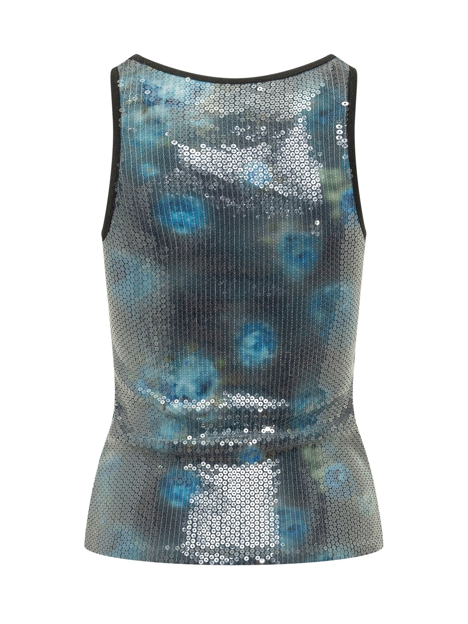 Sleeveless top with rounded neckline and fitted line. Clean structure with visible front logo.