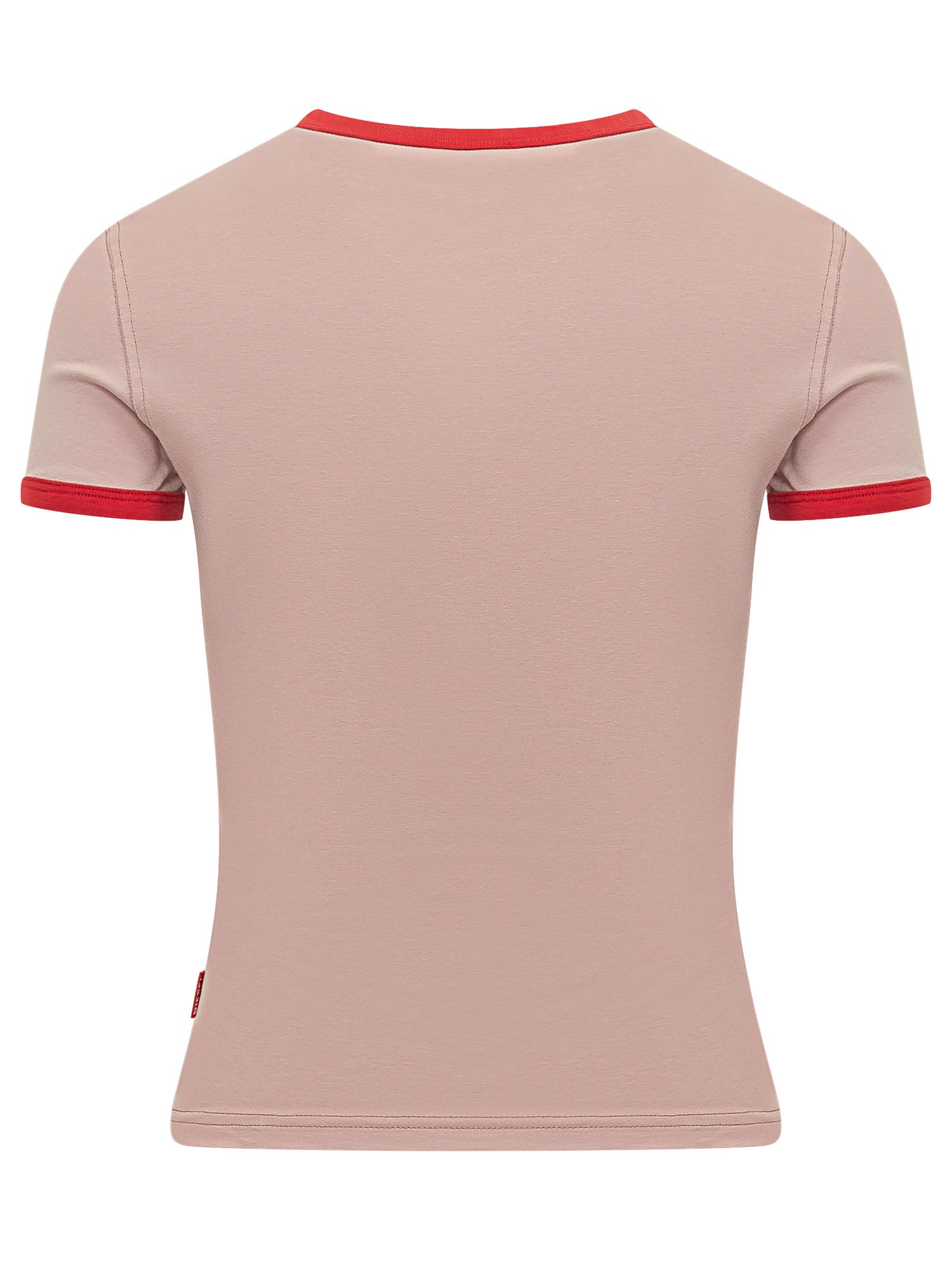 Short sleeve T-shirt with crew neck and pig print with logo on the chest. Contrasting trims on collar and sleeves and fitted shape.