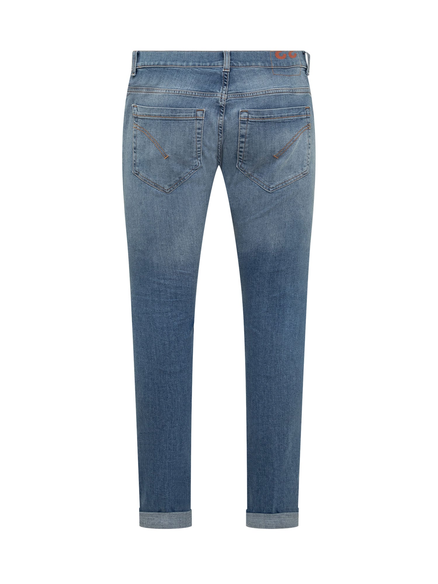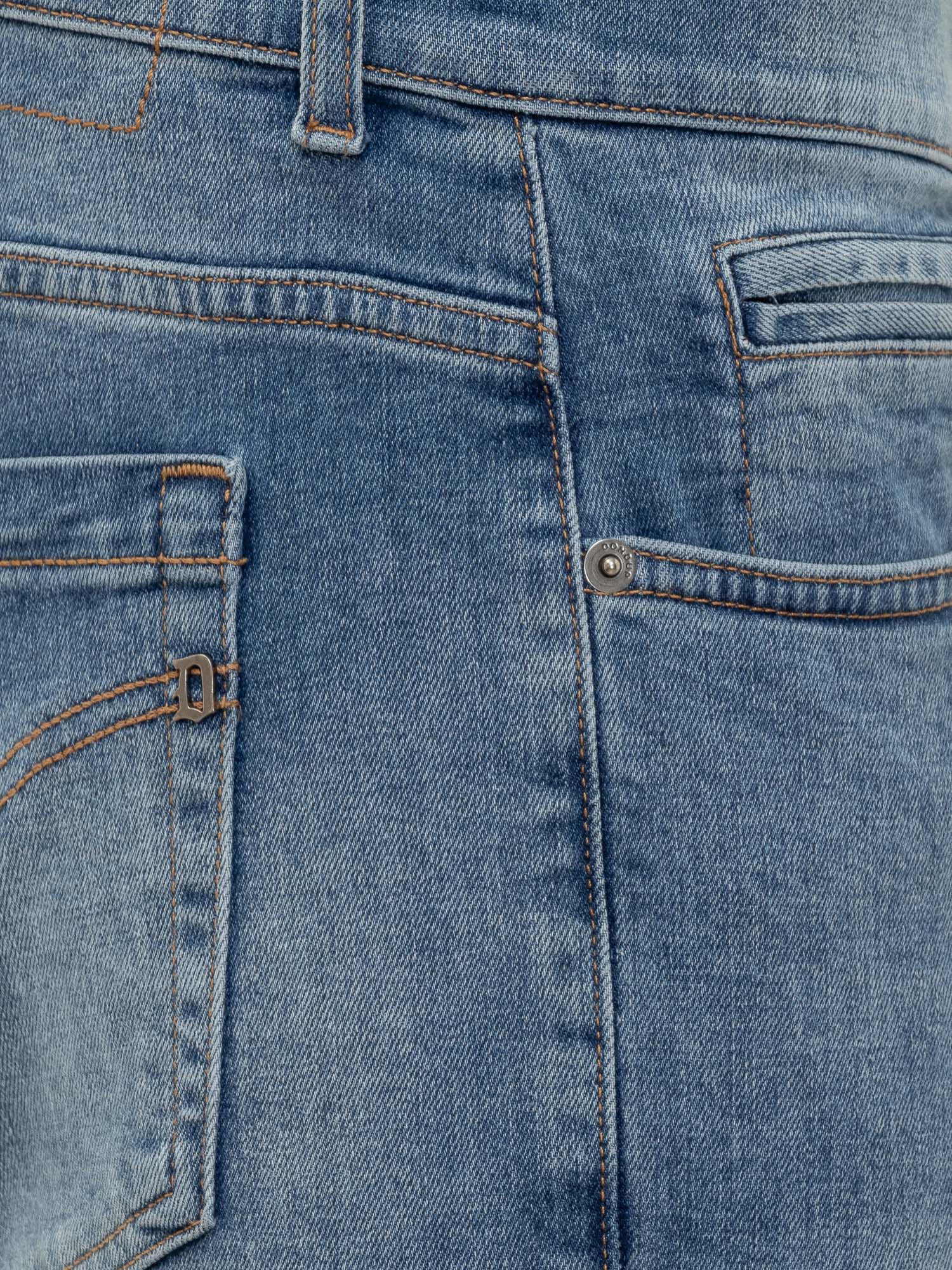 Skinny fit jeans. Button closure. Belt loops. Five pockets. Metal logo on the back.