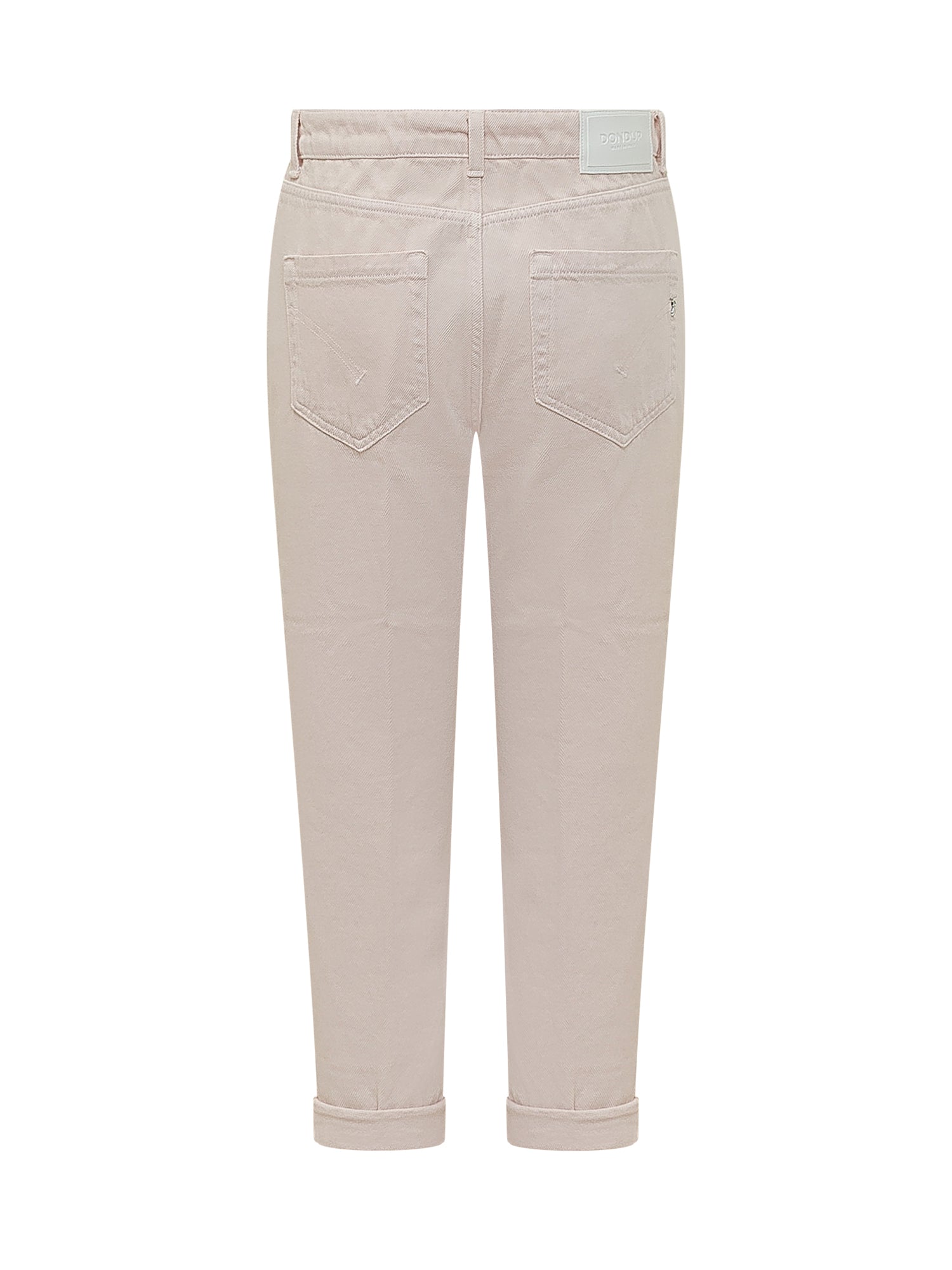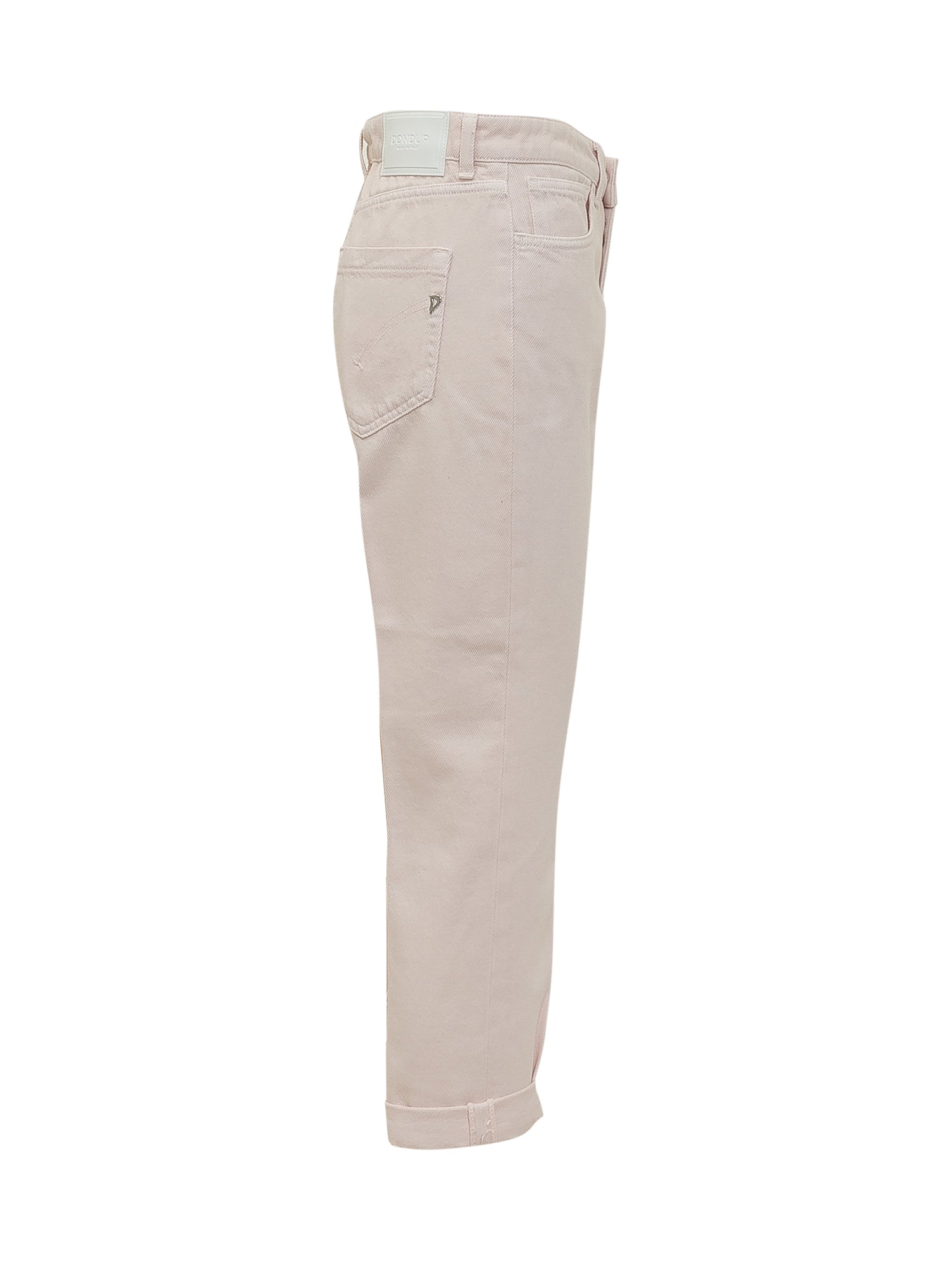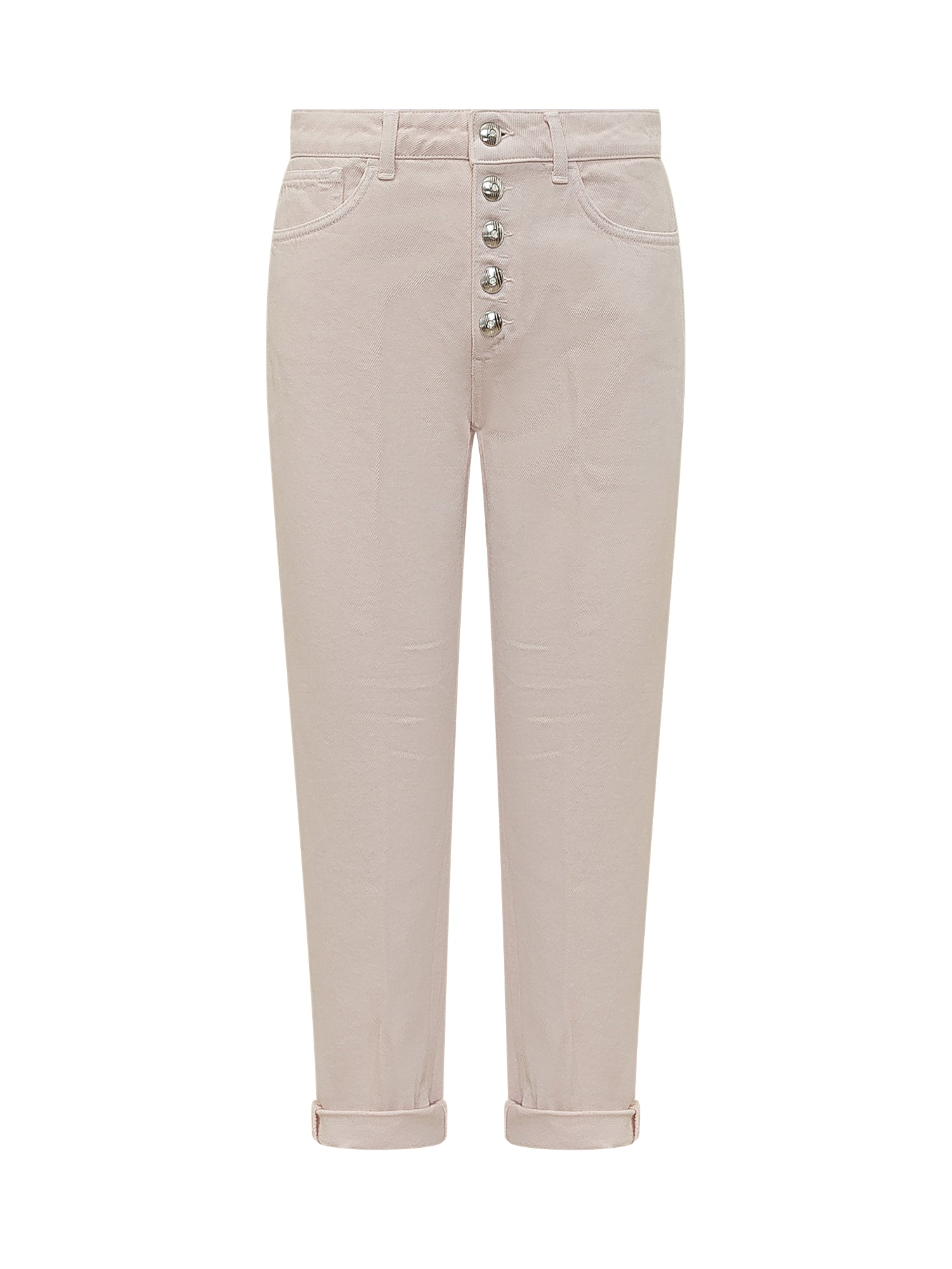 5-pocket denim jeans with a high-rise waist and front button closure. Straight fit with rolled cuffs, belt loops and durable stitching.