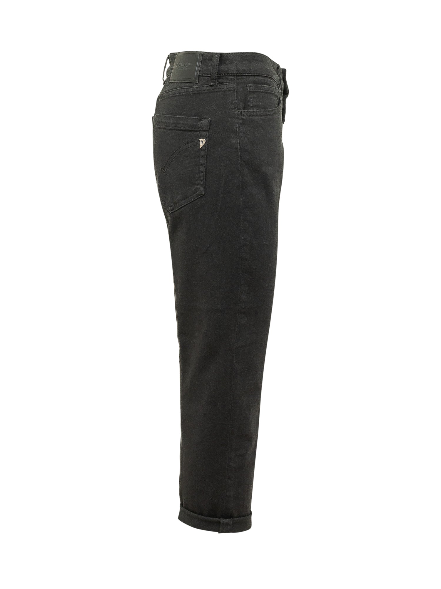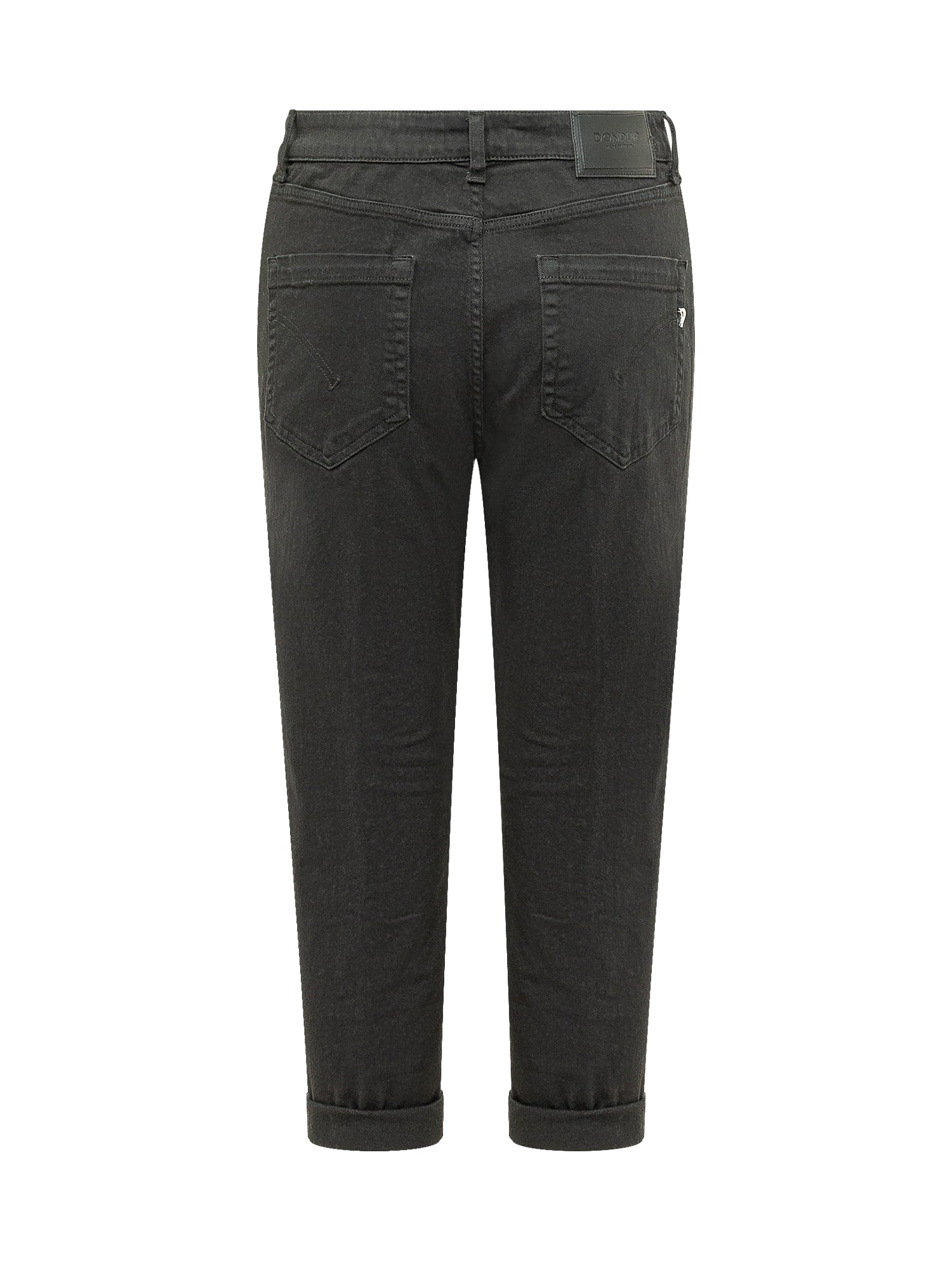 5-pocket denim jeans with a high-rise waist and front button closure. Straight fit with rolled cuffs, belt loops and durable stitching.