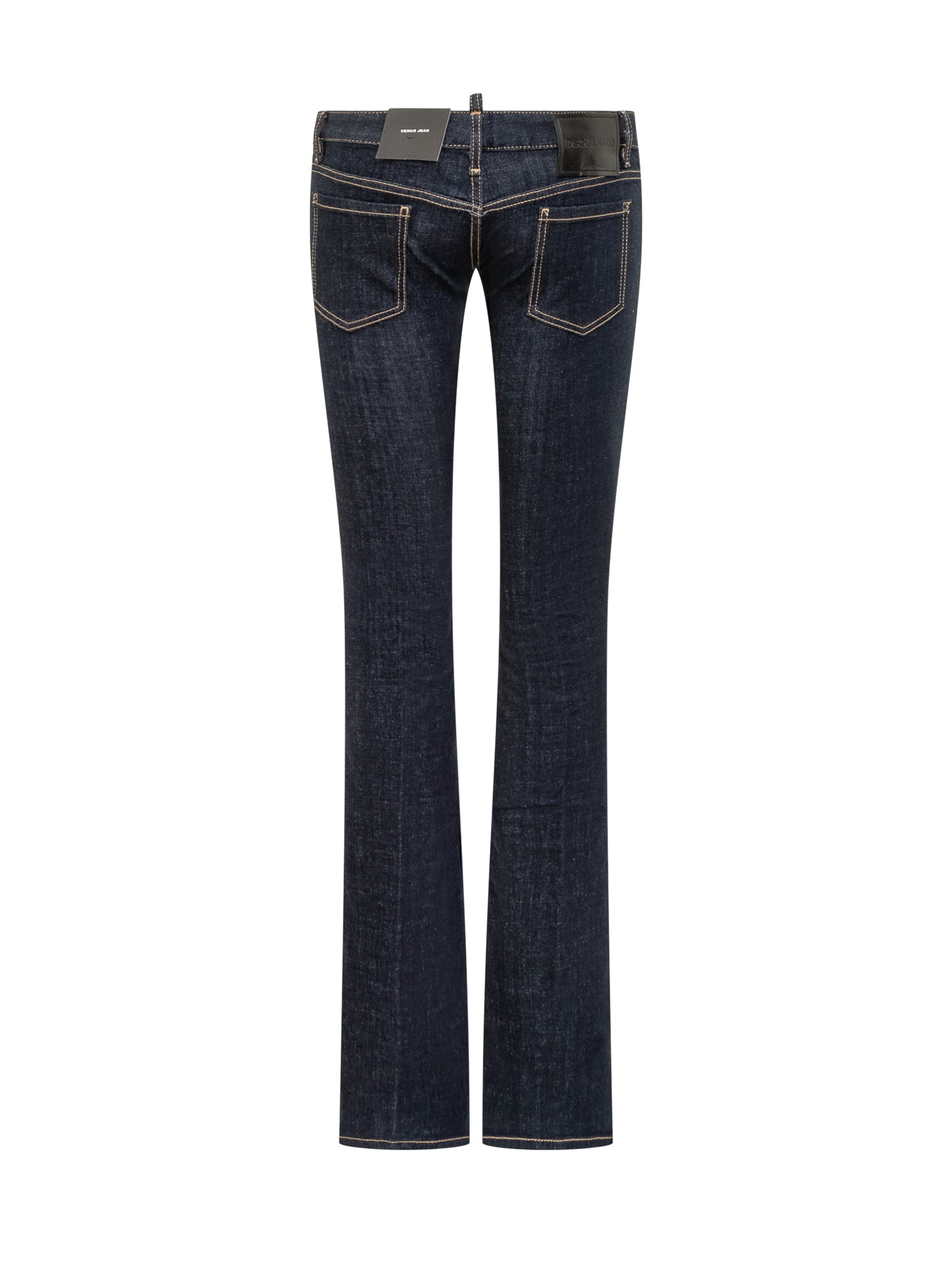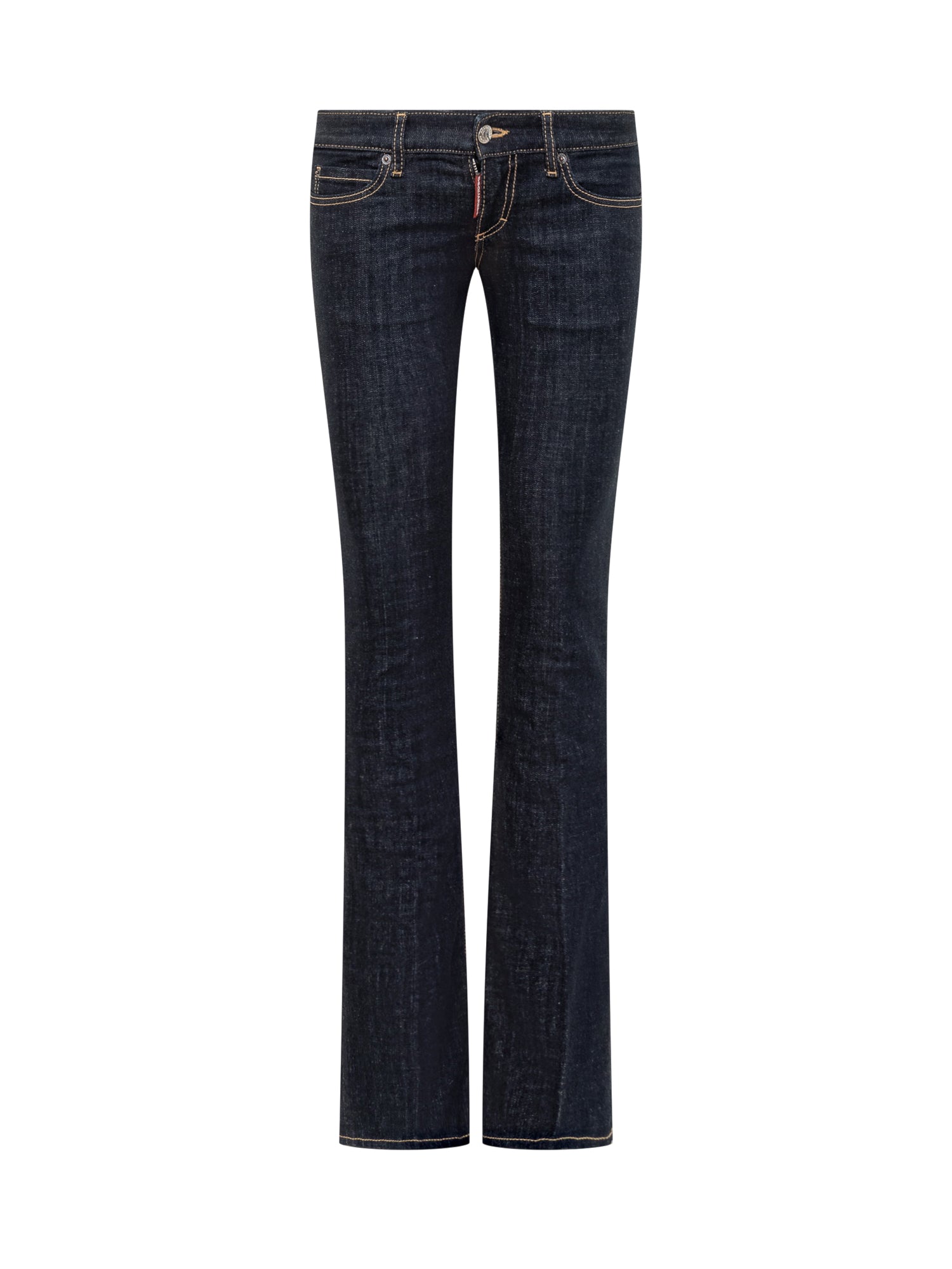 Dsquared2 dark blue bootcut denim jeans with contrast stitching and feminine fit.