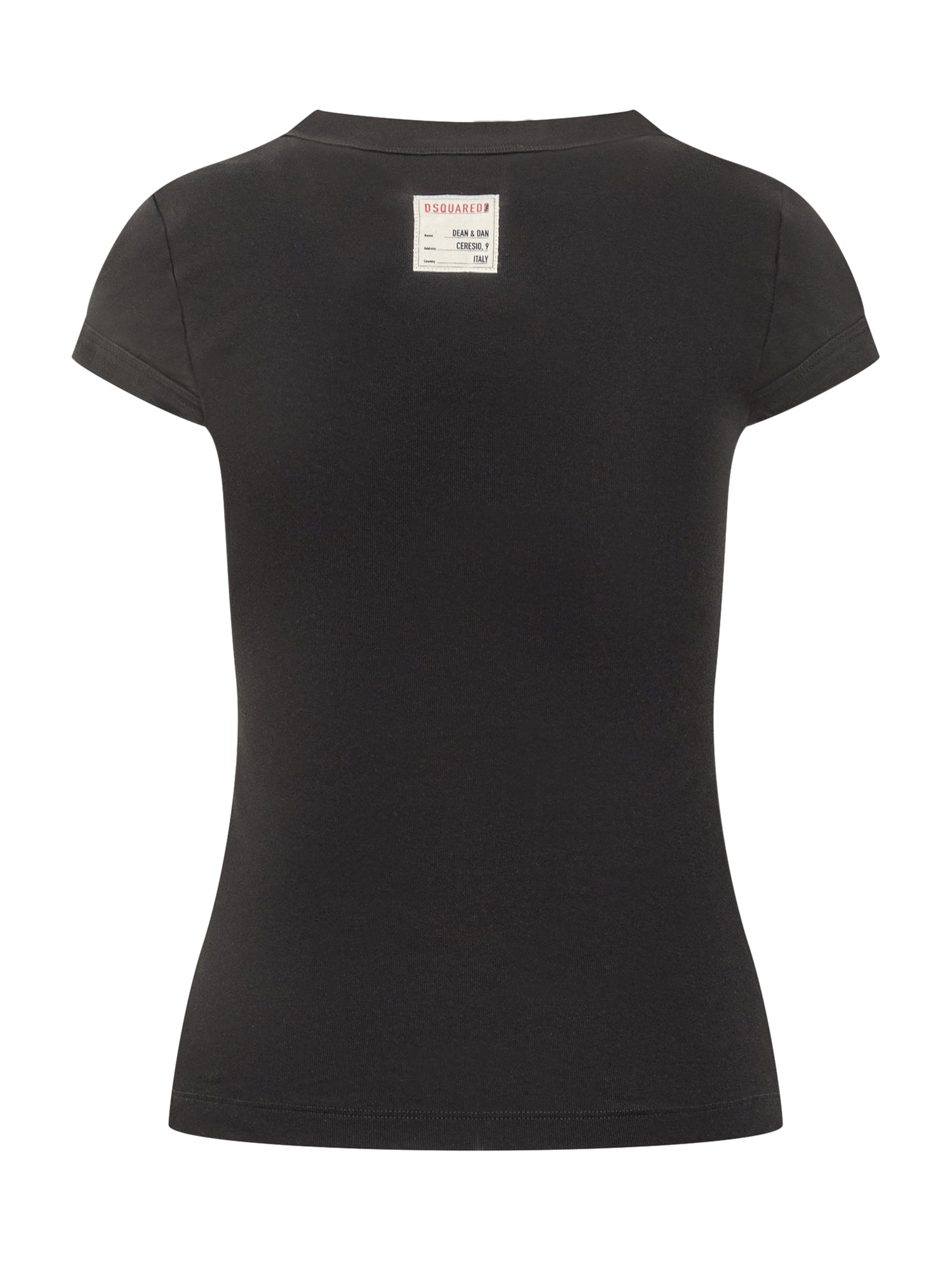 Dsquared2 black cotton T-shirt with slim fit and Sexy print on neckline.