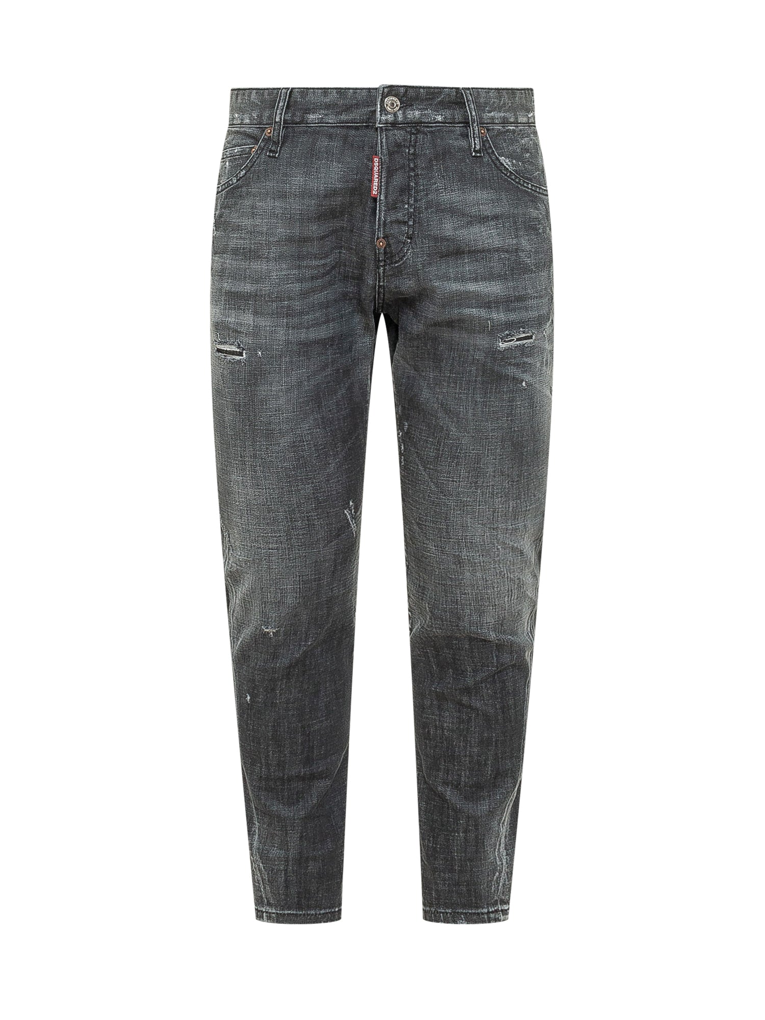 Five-pocket jeans with a slim fit and tapered leg. Worn-in effect with subtle abrasions and distressed details. Front buttons closure, belt loops and contrast stitching for a contemporary look.
