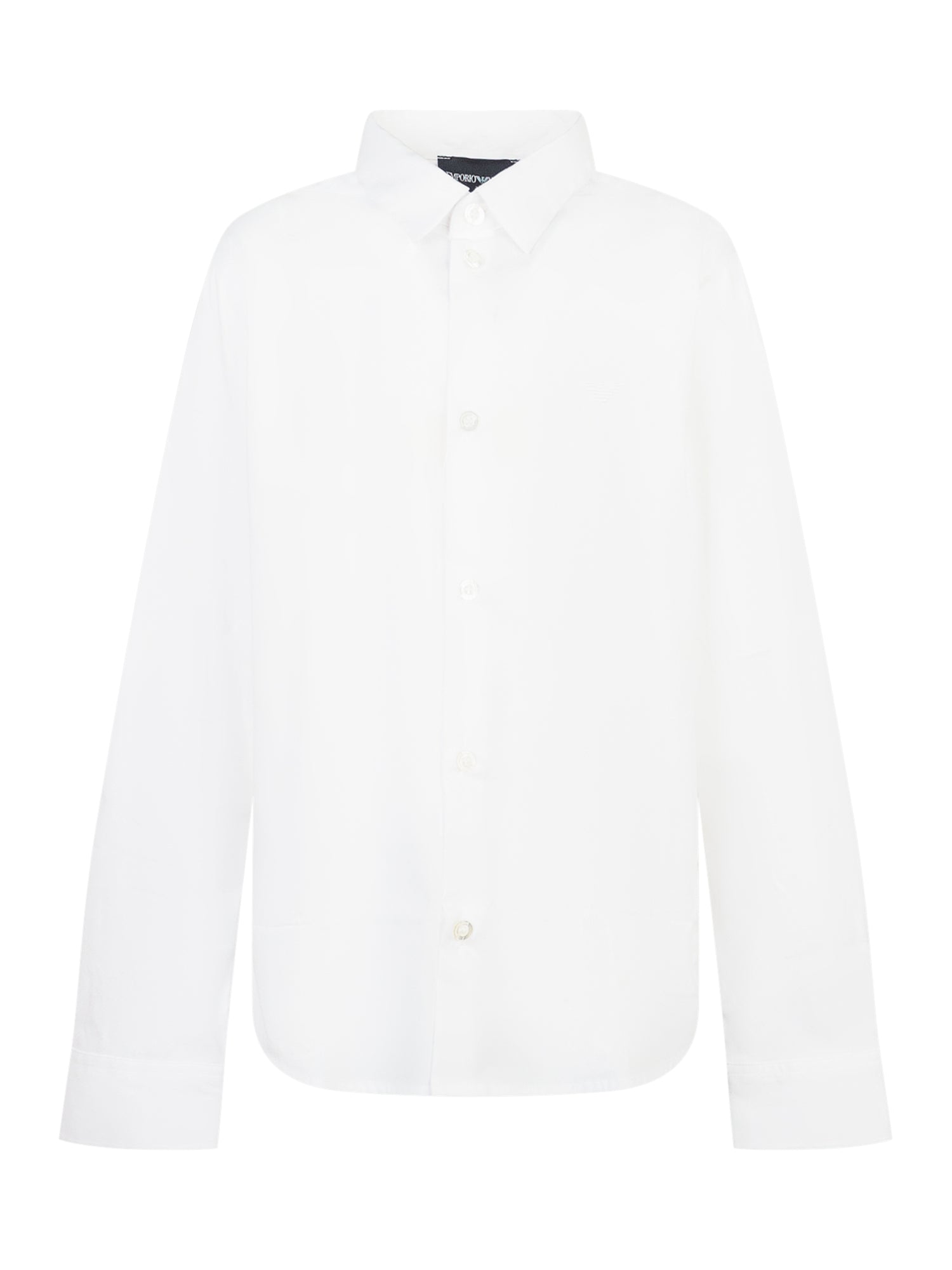 Emporio Armani boys white cotton shirt with classic collar and front buttons.