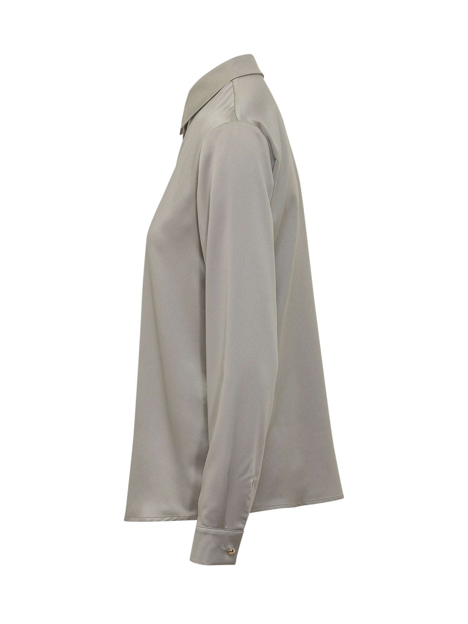 Fluid satin shirt with classic collar and front fastening.