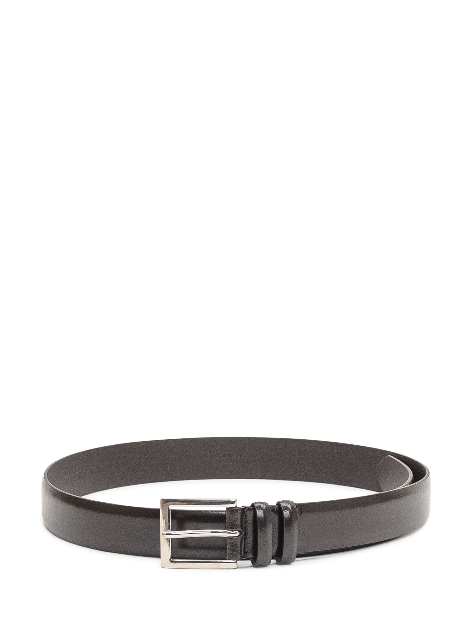 Mancini dark brown smooth leather belt with silver buckle.