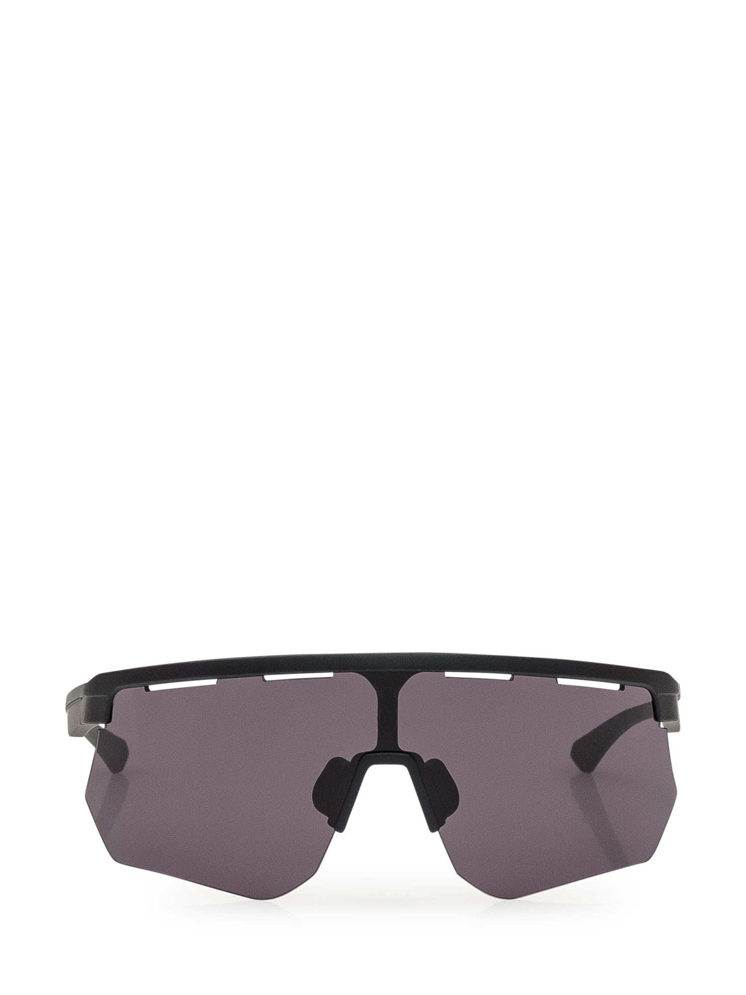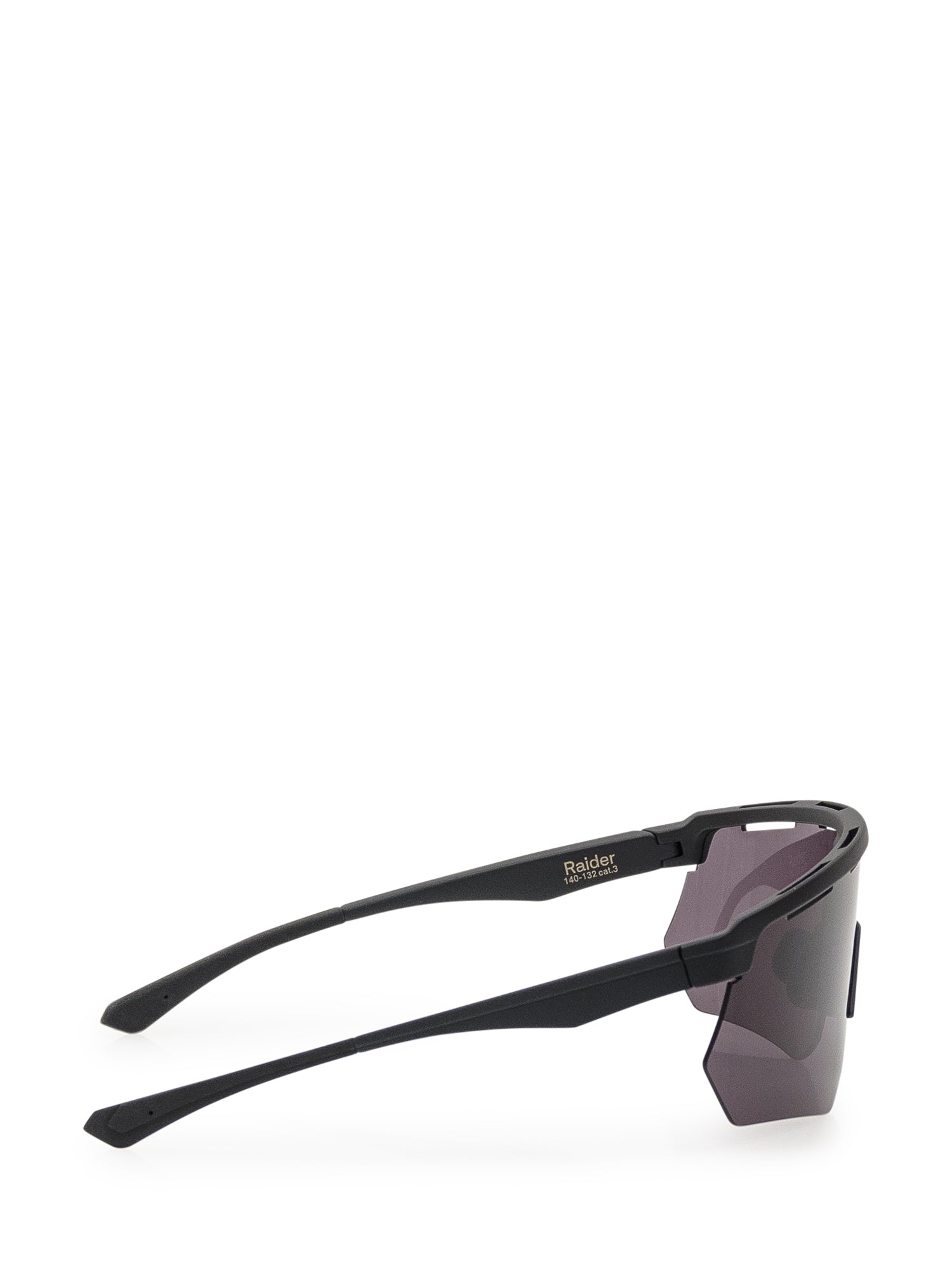 Face Hide Raider sunglasses featuring a lightweight black frame and a single oversized smoke lens. A sporty and futuristic design. Allblack variant.
