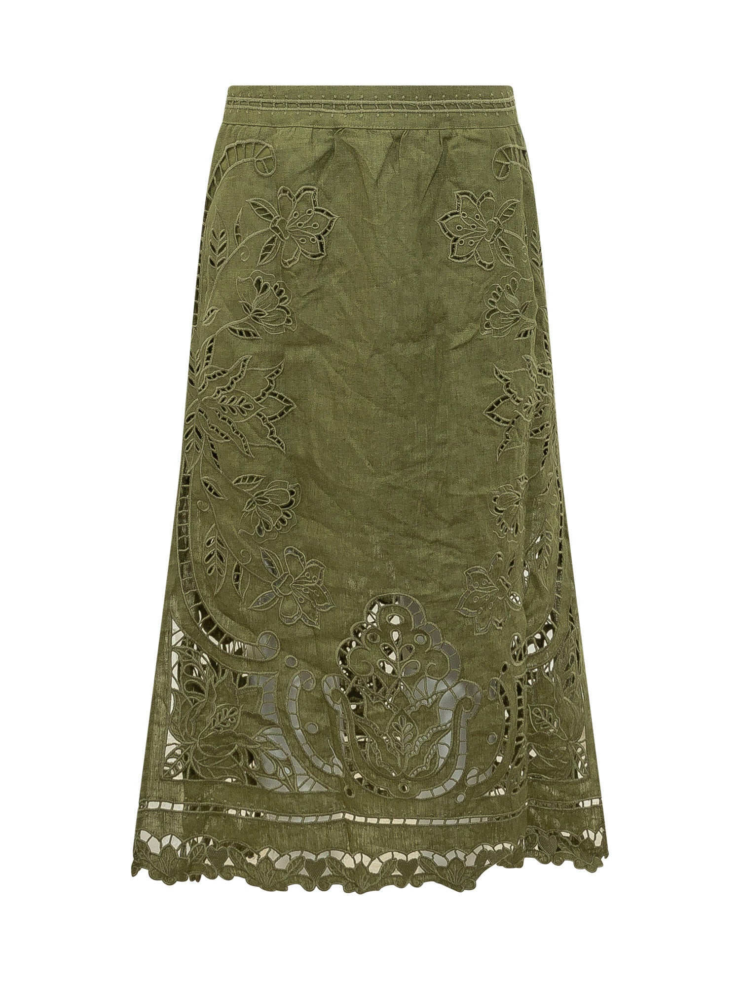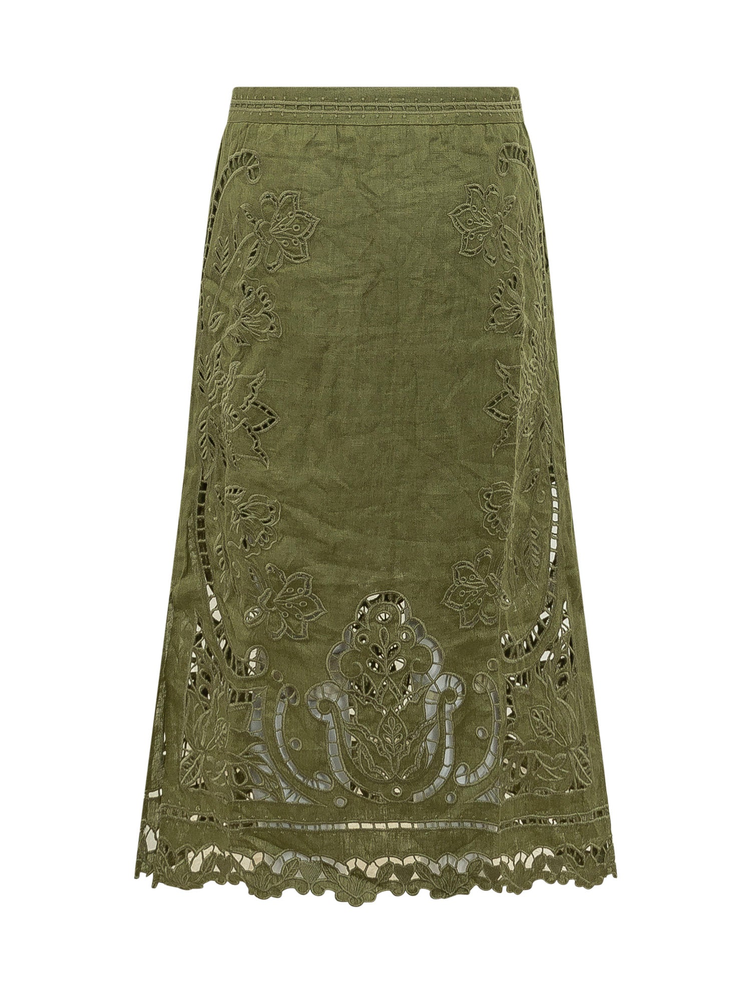 Midi skirt in light fabric with Richelieu embroidery and delicate cut-out detailing. Elegant and feminine silhouette.