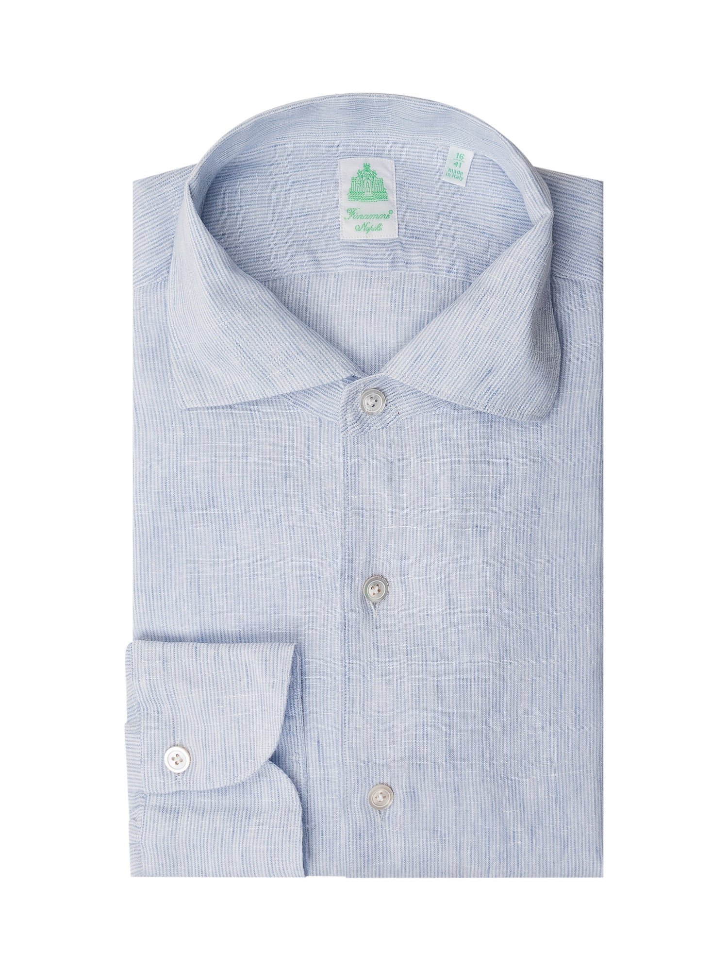 Cotton shirt with thin stripe pattern, classic collar, front button closure and buttoned cuffs.