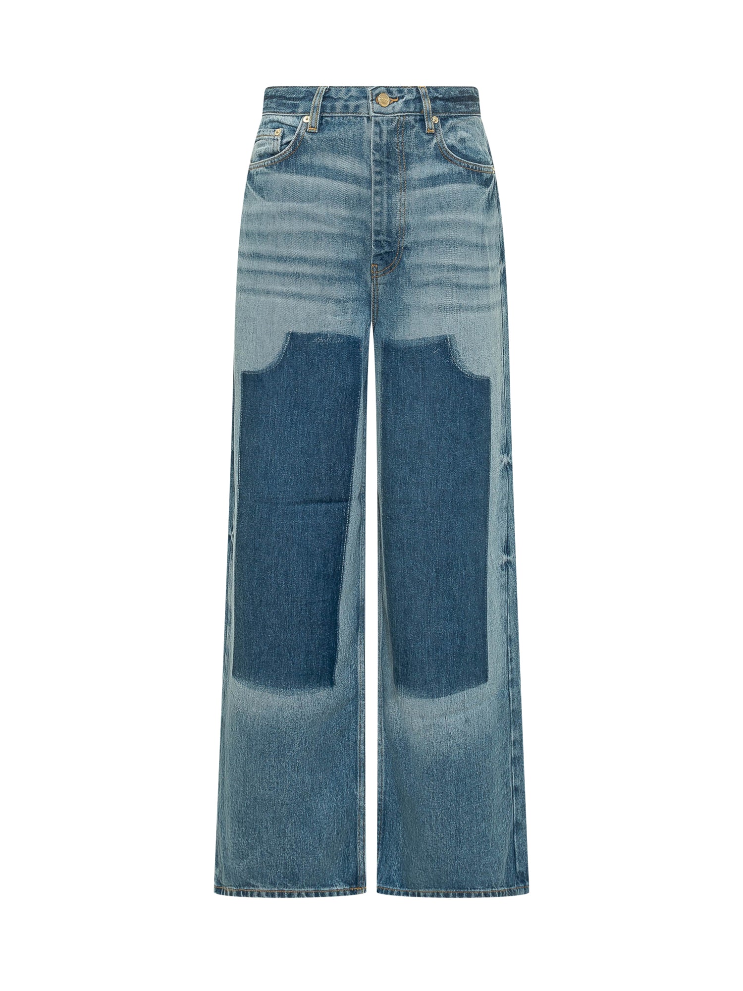 5-pocket denim jeans with a regular rise and wide baggy leg. Contrast wash with tonal panel detailing for a standout look. Button and zip fastening.