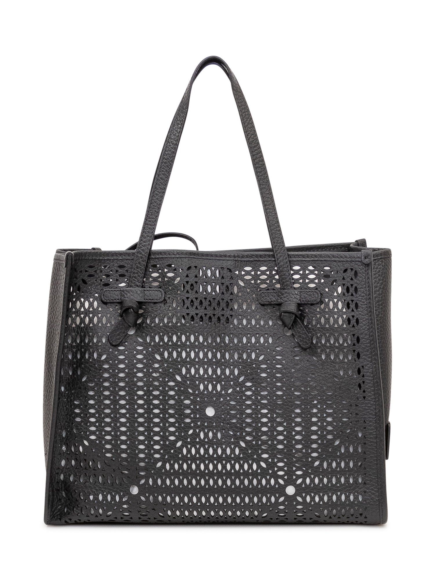 Tote bag with spacious structure, perforated design and double handles, functional and roomy with knotted details
