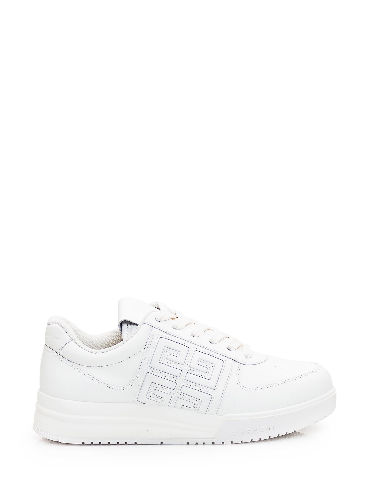 Low white leather sneaker. Perforated toe. Lace-up closure. Leather Logo patch on tongue. 4G logo on the side. Logo on the heel. 4G logo on the side.