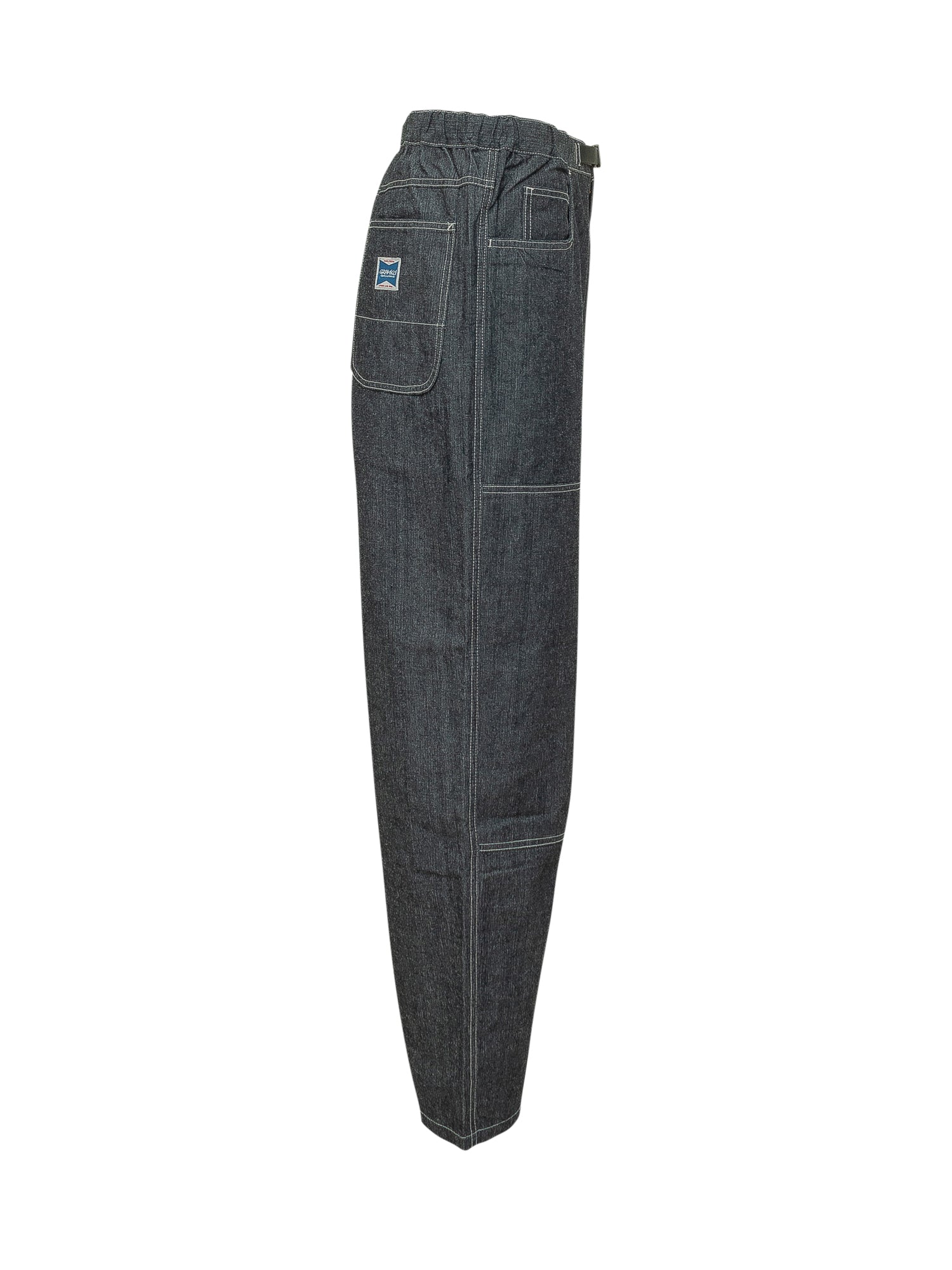 Trousers with elasticated waistband and integrated belt. Side pockets and contrast stitching along the leg. Regular fit with straight silhouette.