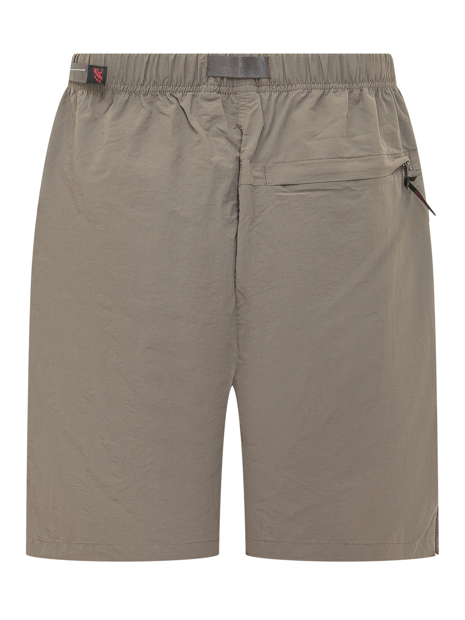 Shorts with integrated belt and buckle closure. Side pockets and applied logo at hem. Functional design with knee length.
