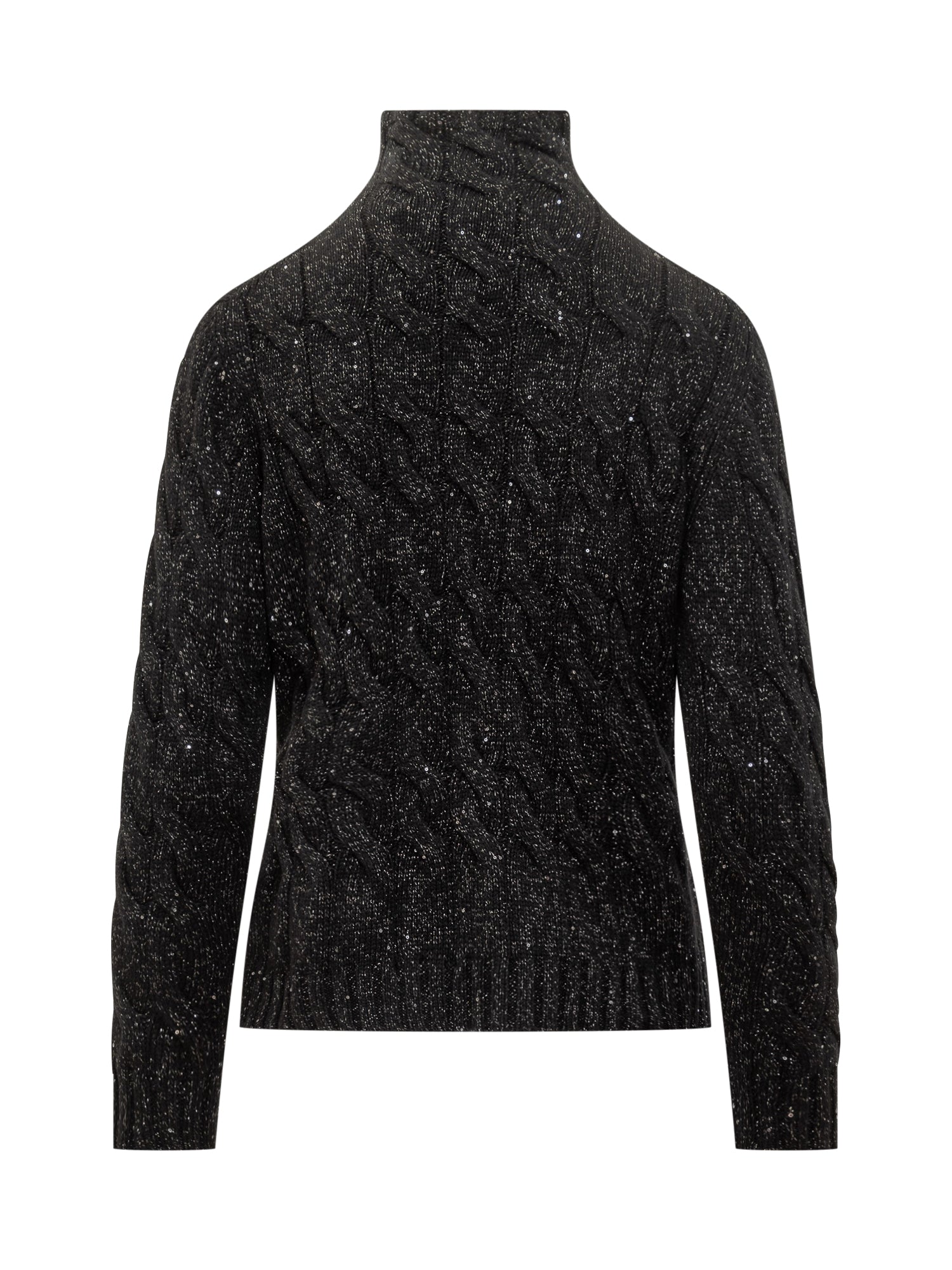 Gran Sasso black turtleneck with cable knit and lurex details for a touch of sparkle.