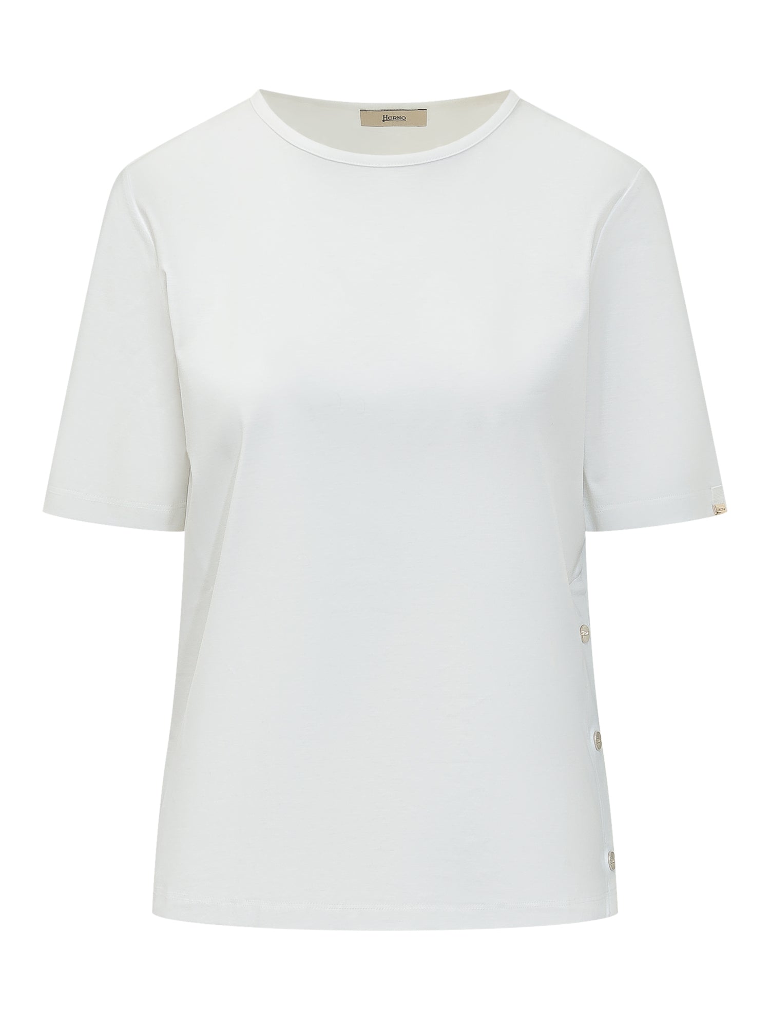 Soft jersey T-shirt featuring a clean silhouette and decorative side buttons.