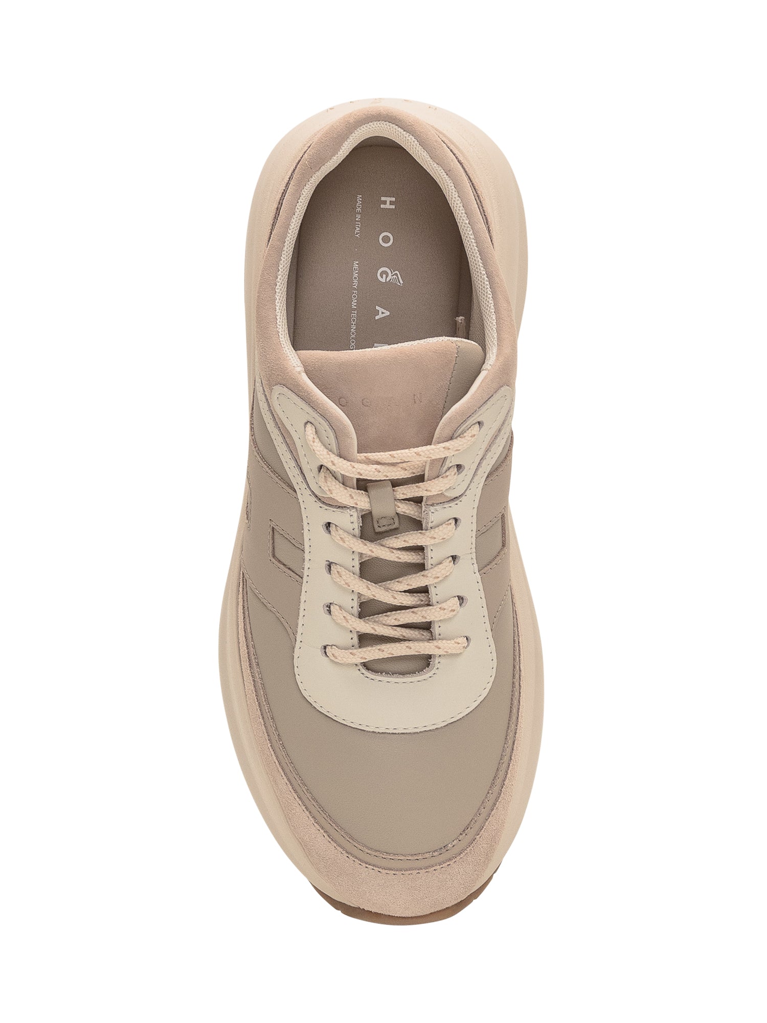 Hogan H696 women s sneakers in beige leather and suede with an oversized sole.