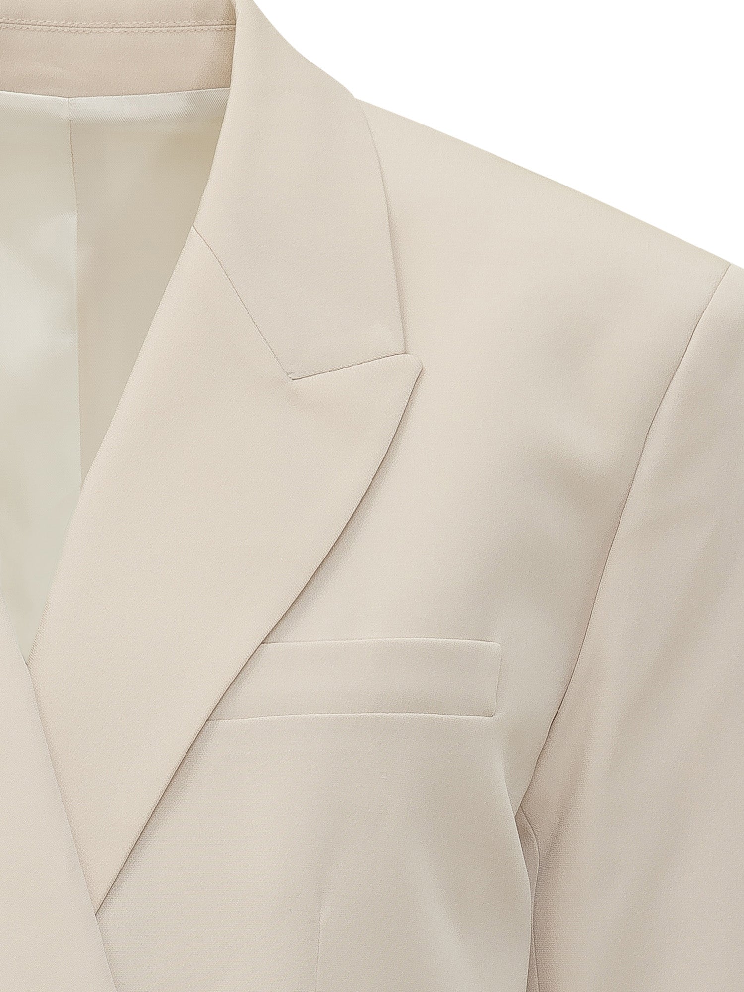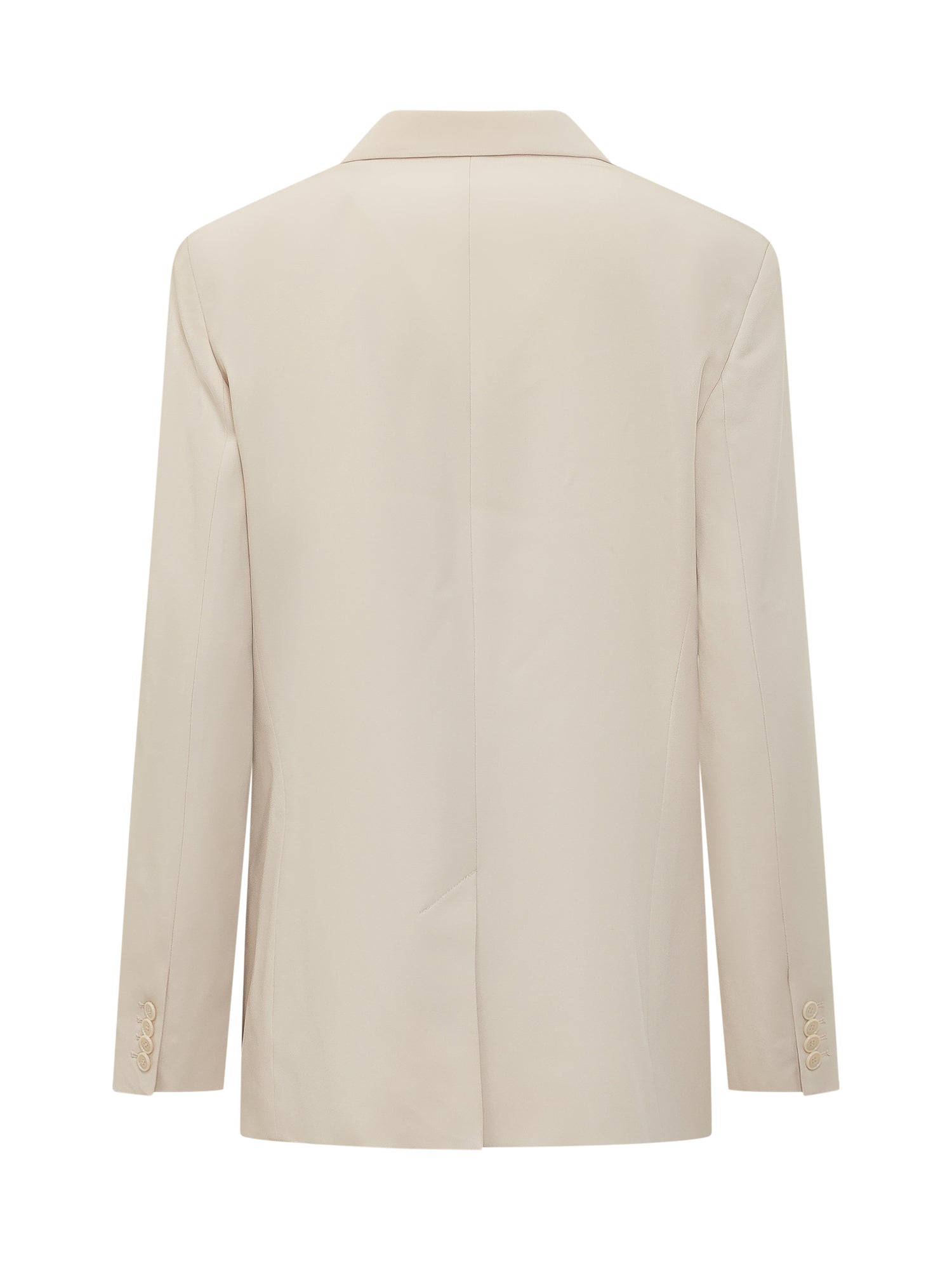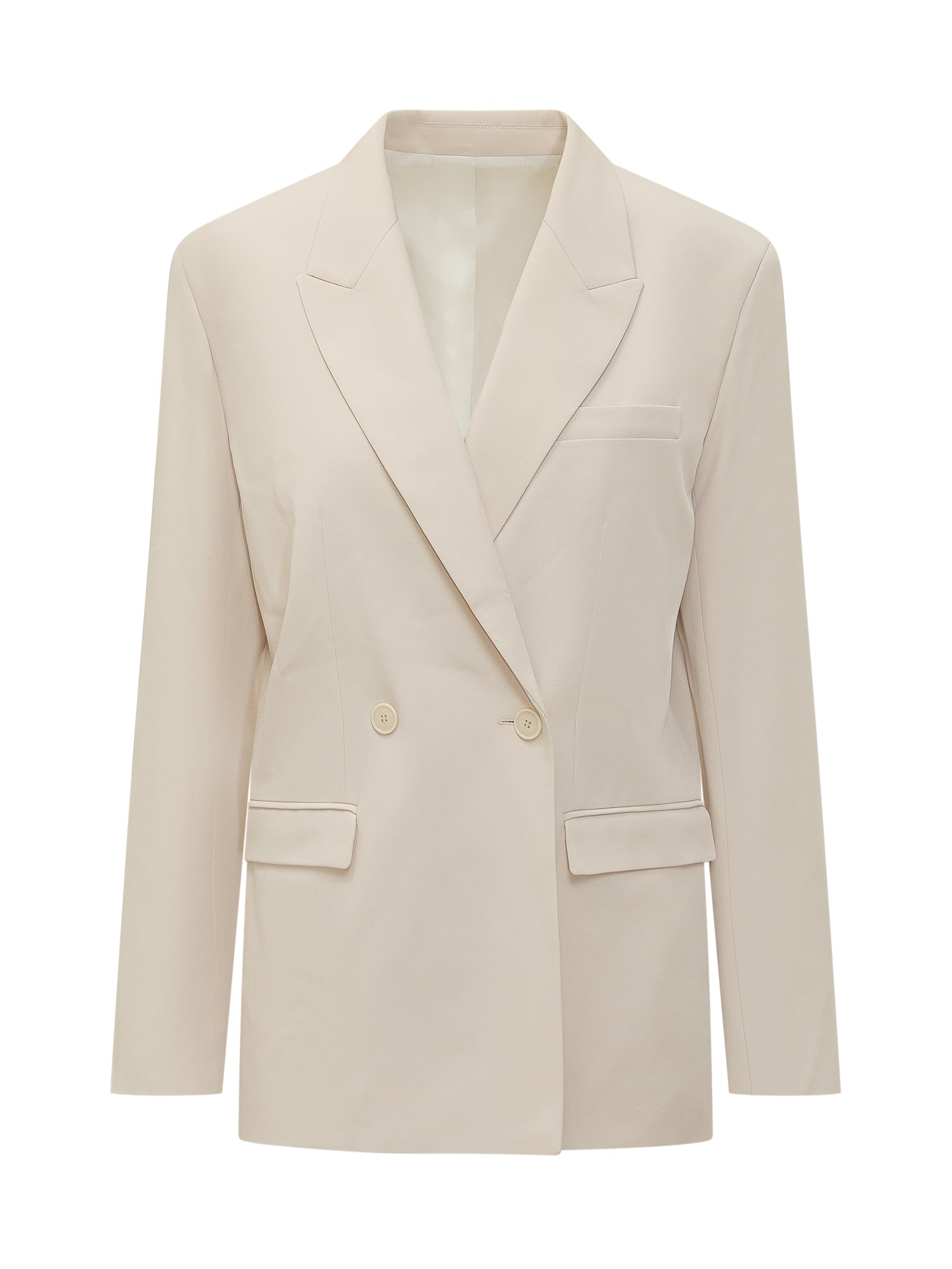 Double breasted blazer with long sleeves and classic lapels. Features flap pockets and a clean tailored construction.