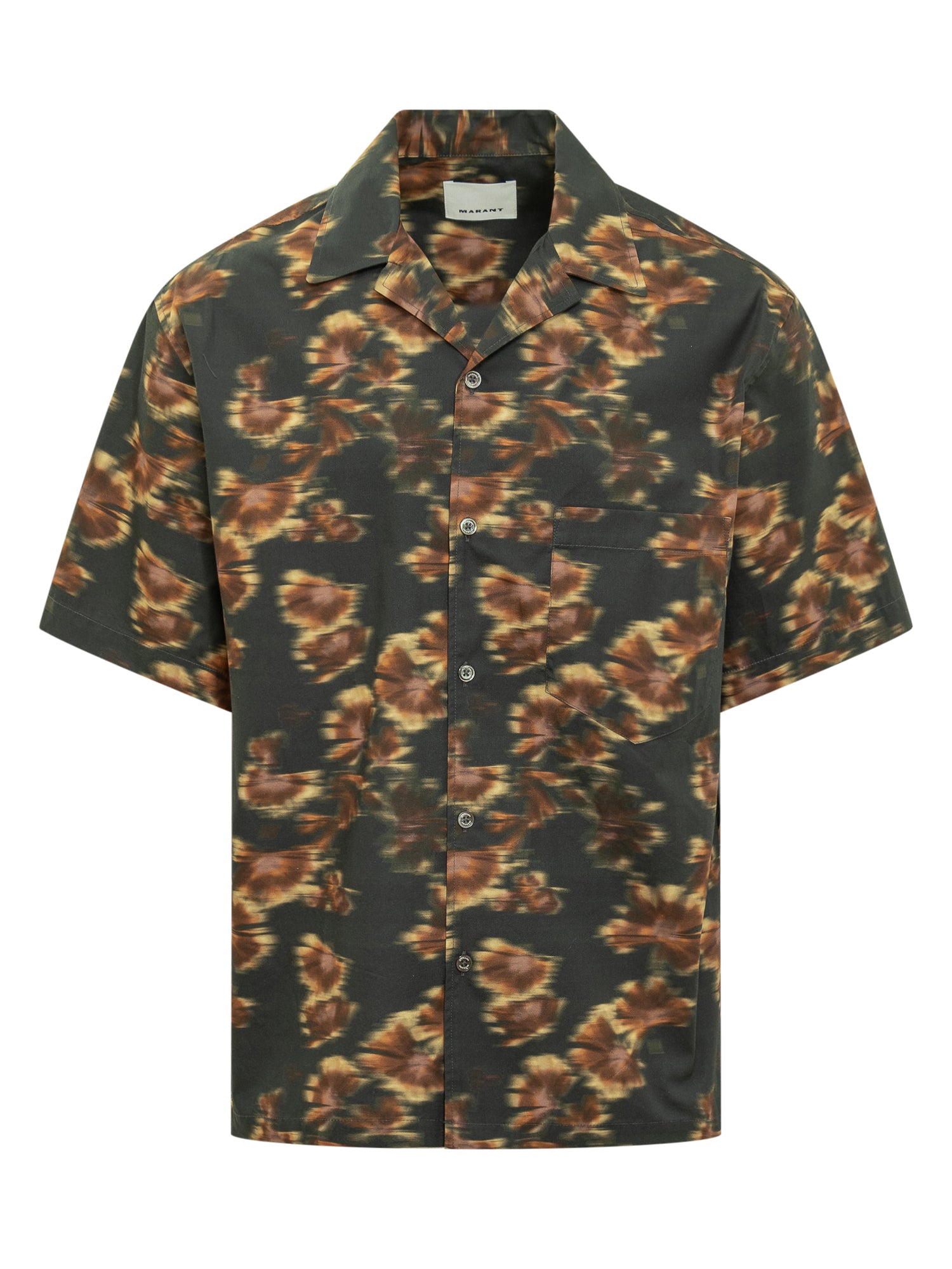 Short-sleeved shirt. Classic collar. Button closure. Chest pocket. All-over pattern motif.