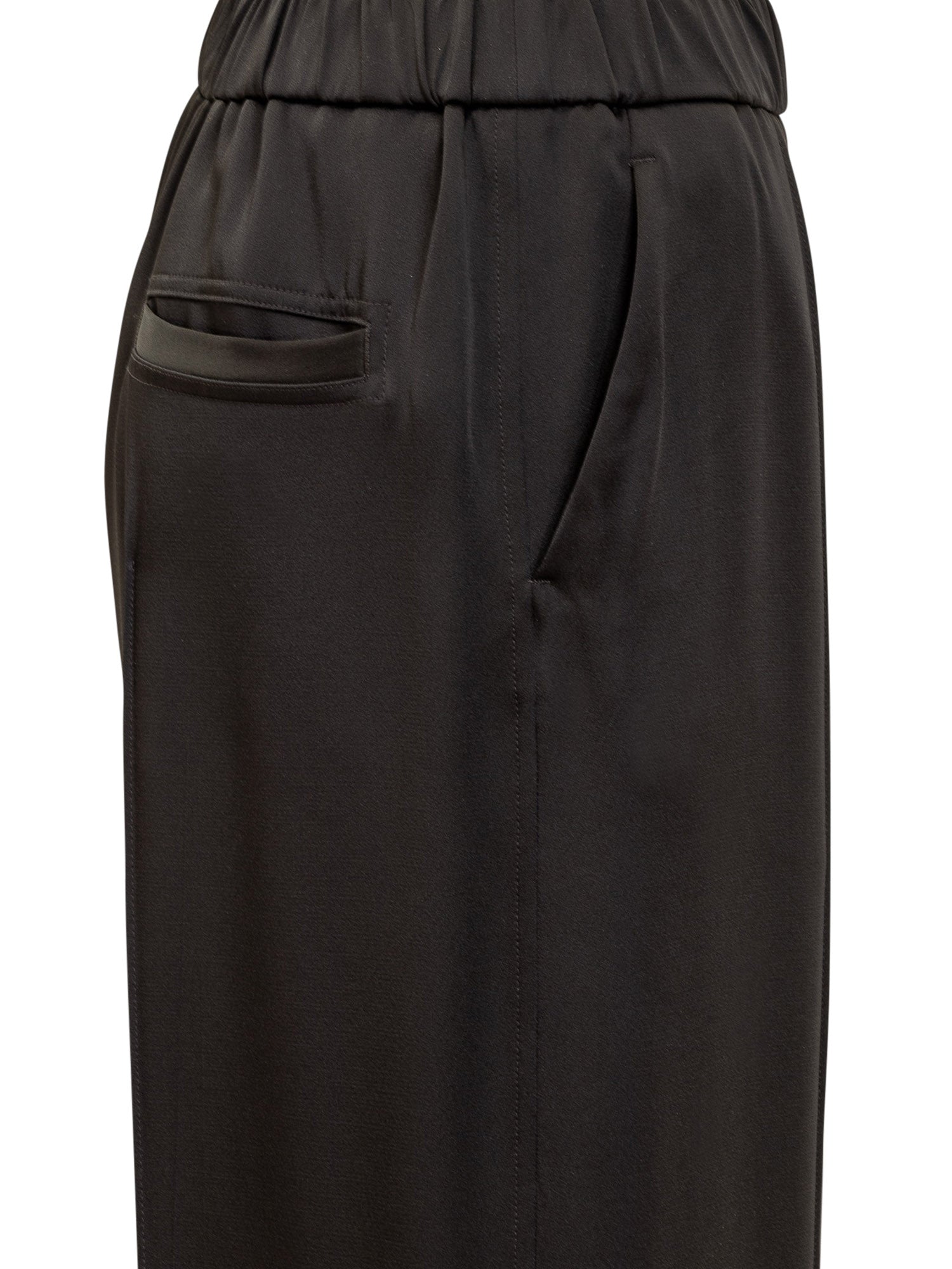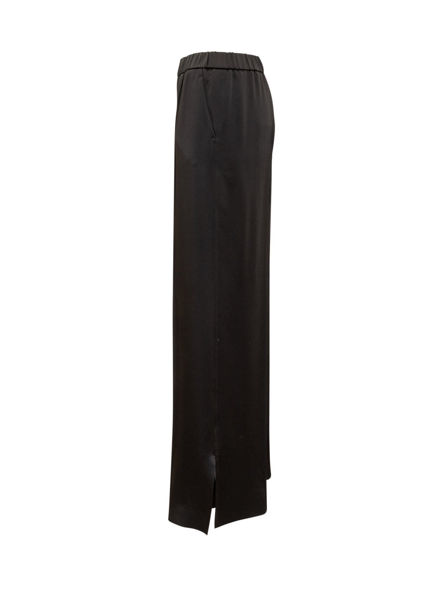 Long pants. Elasticated waist. Side pockets. Back pocket. Slits on the bottom.