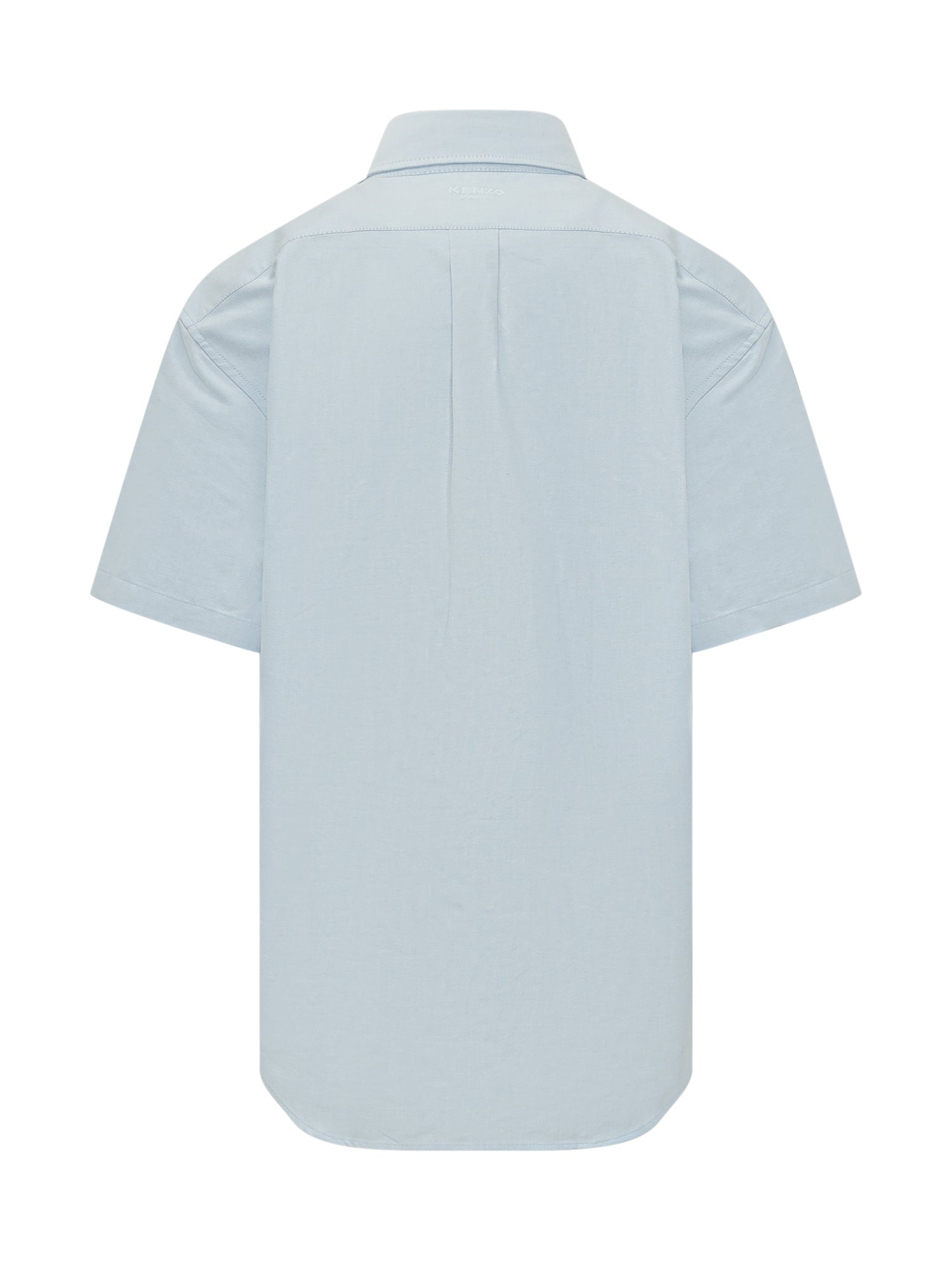 Boke Flower shirt with front button closure and button down collar. Short sleeves and embroidered floral logo on the chest. Straight cut and clean design for a contemporary look.