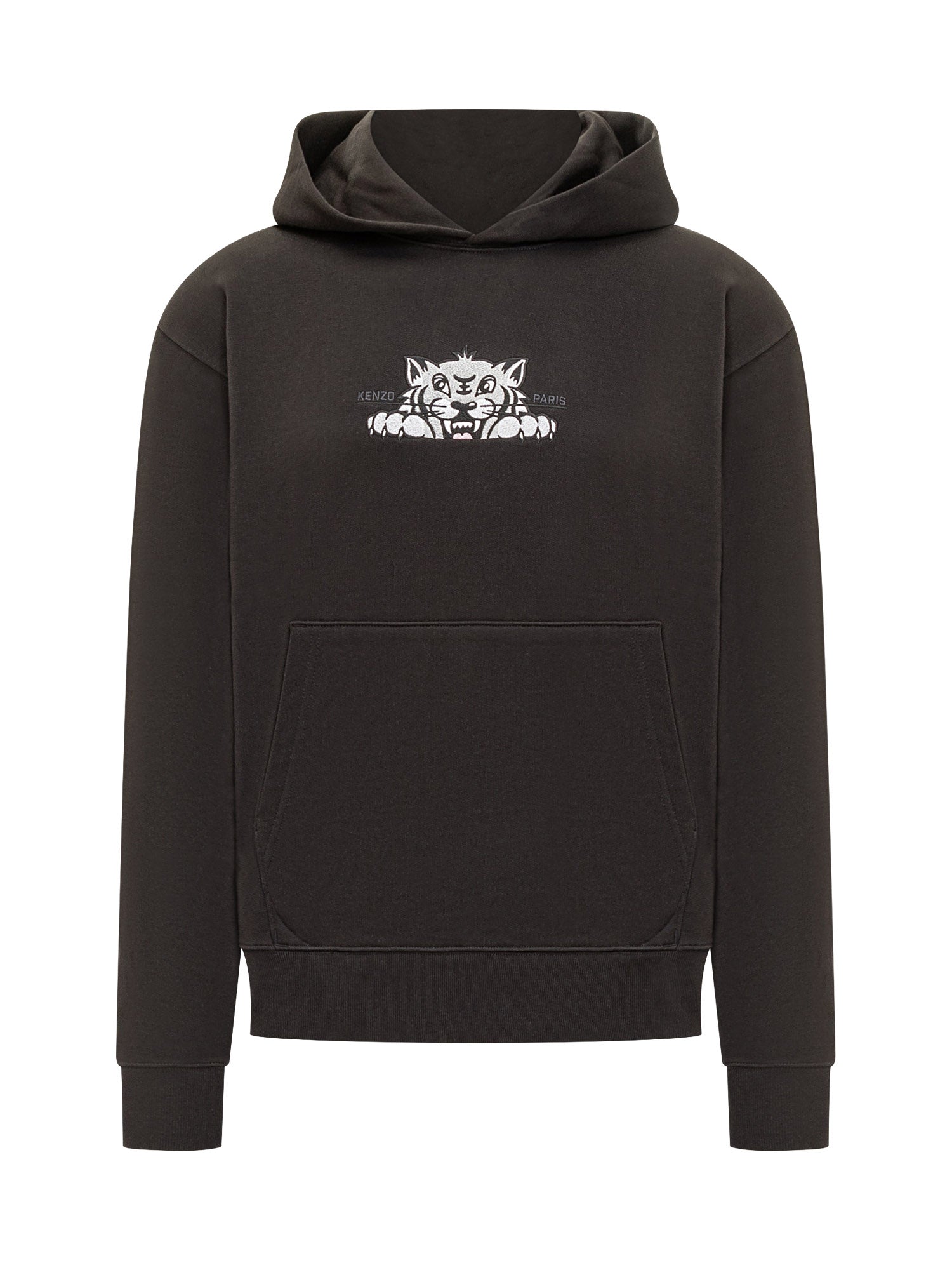 Black Kenzo hoodie featuring the iconic tiger print on the chest.