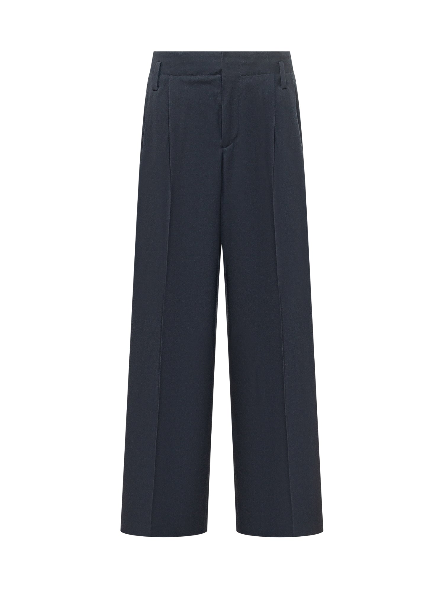 Wide leg pants with front closure and belt loops. Wide leg with central crease for a fluid contemporary silhouette. Clean design ideal for elegant and modern looks.
