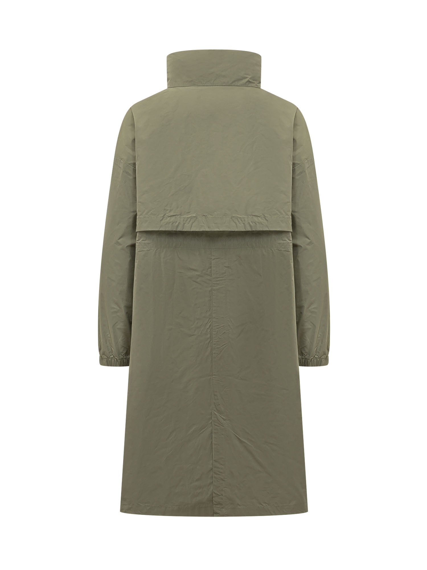 Long coat with high collar and front double zip closure. Side pockets and wide silhouette. Linear design created for urban looks with contemporary appeal.