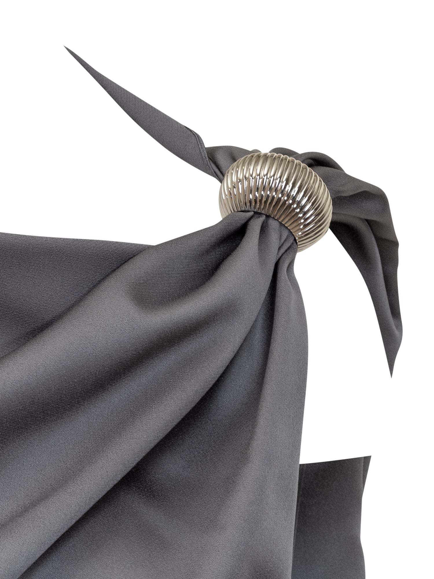 Sleeveless top. Side hidden zip closure. Jewel detail. Draped effect.