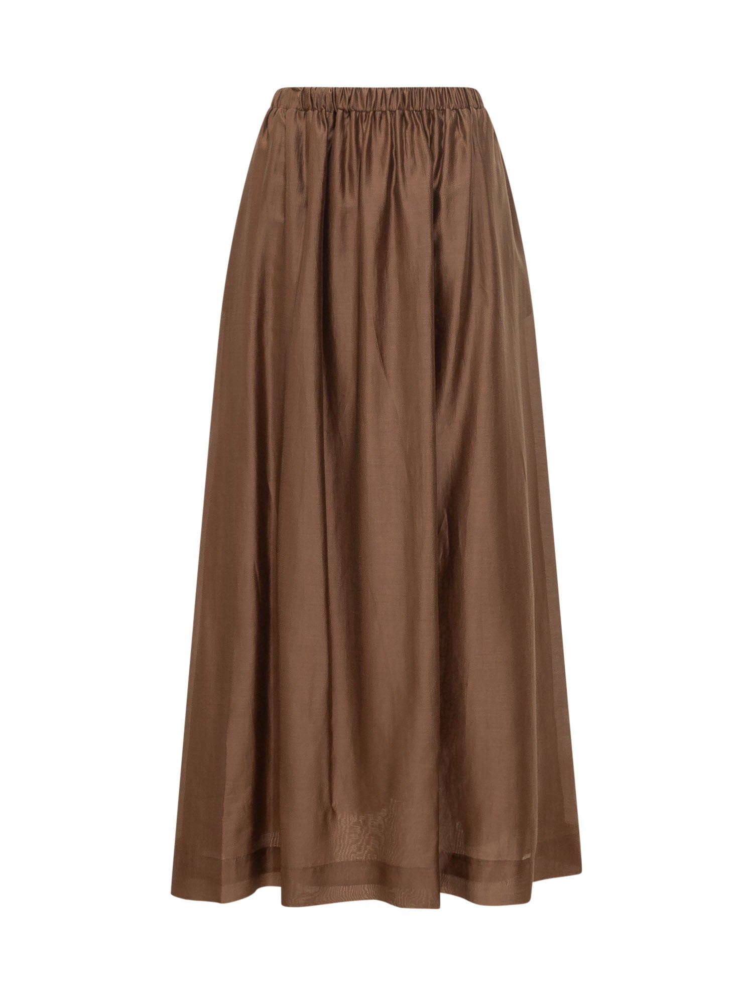 Long skirt with elastic waistband and wide silhouette, lightweight fabric with fluid movement