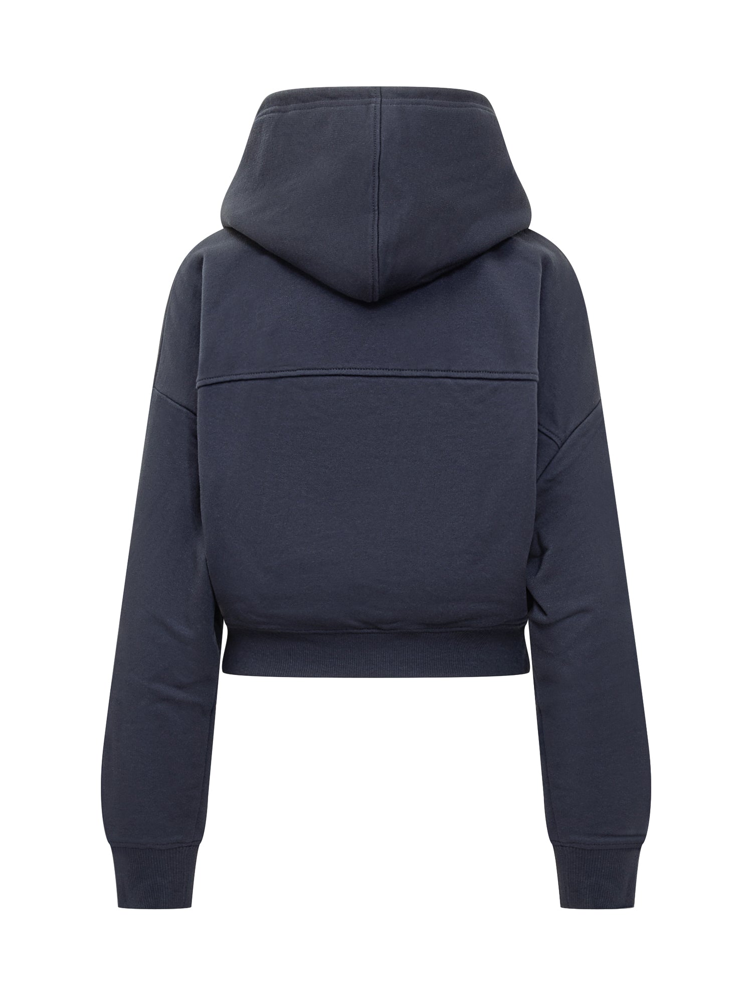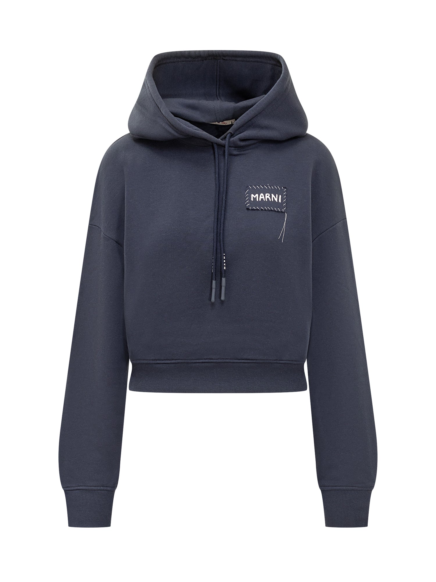 Cropped hoodie in pure cotton with embroidered logo on chest and ribbed trims.