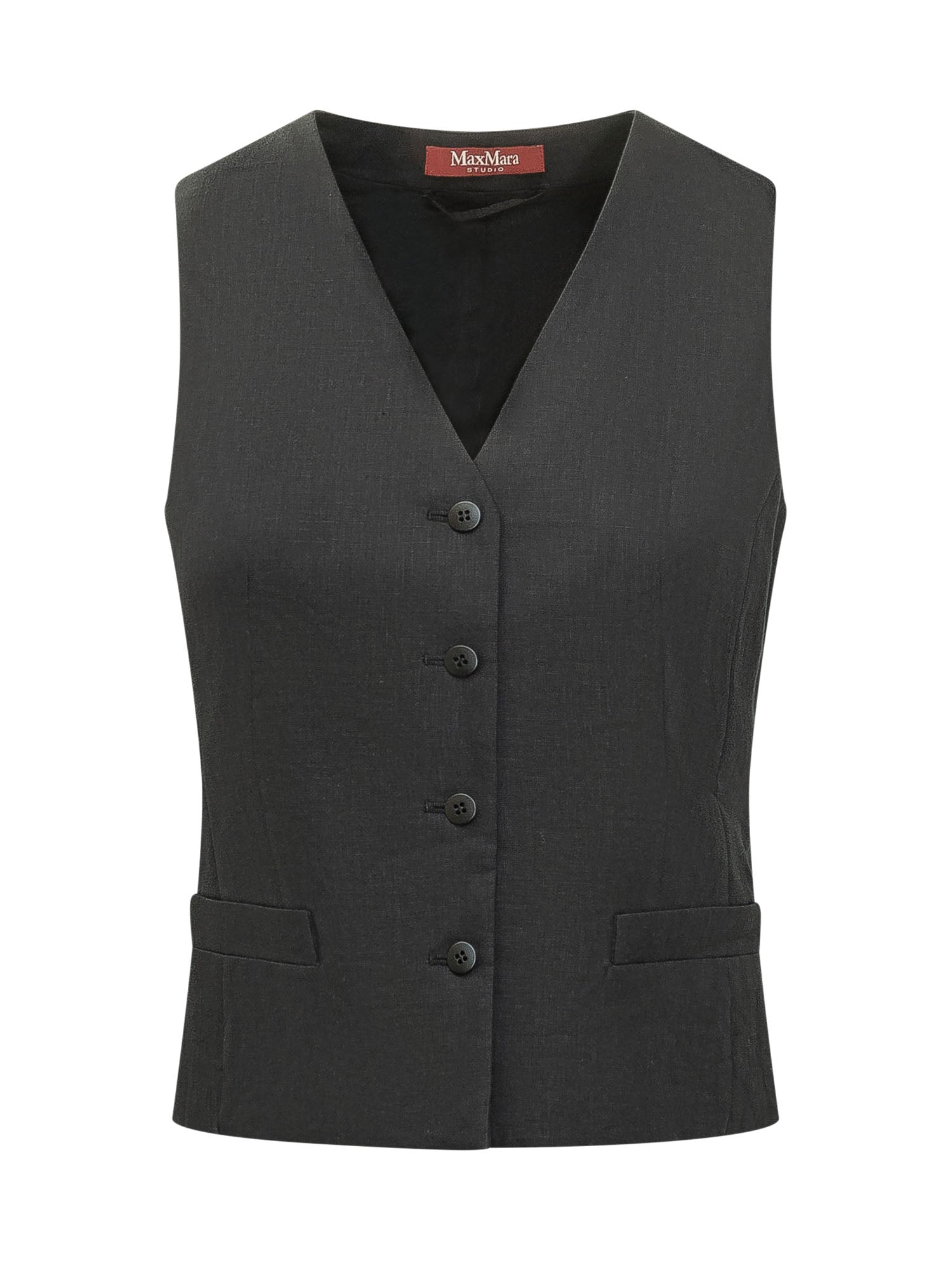 Sleeveless vest with V neckline, front button closure and patch pockets