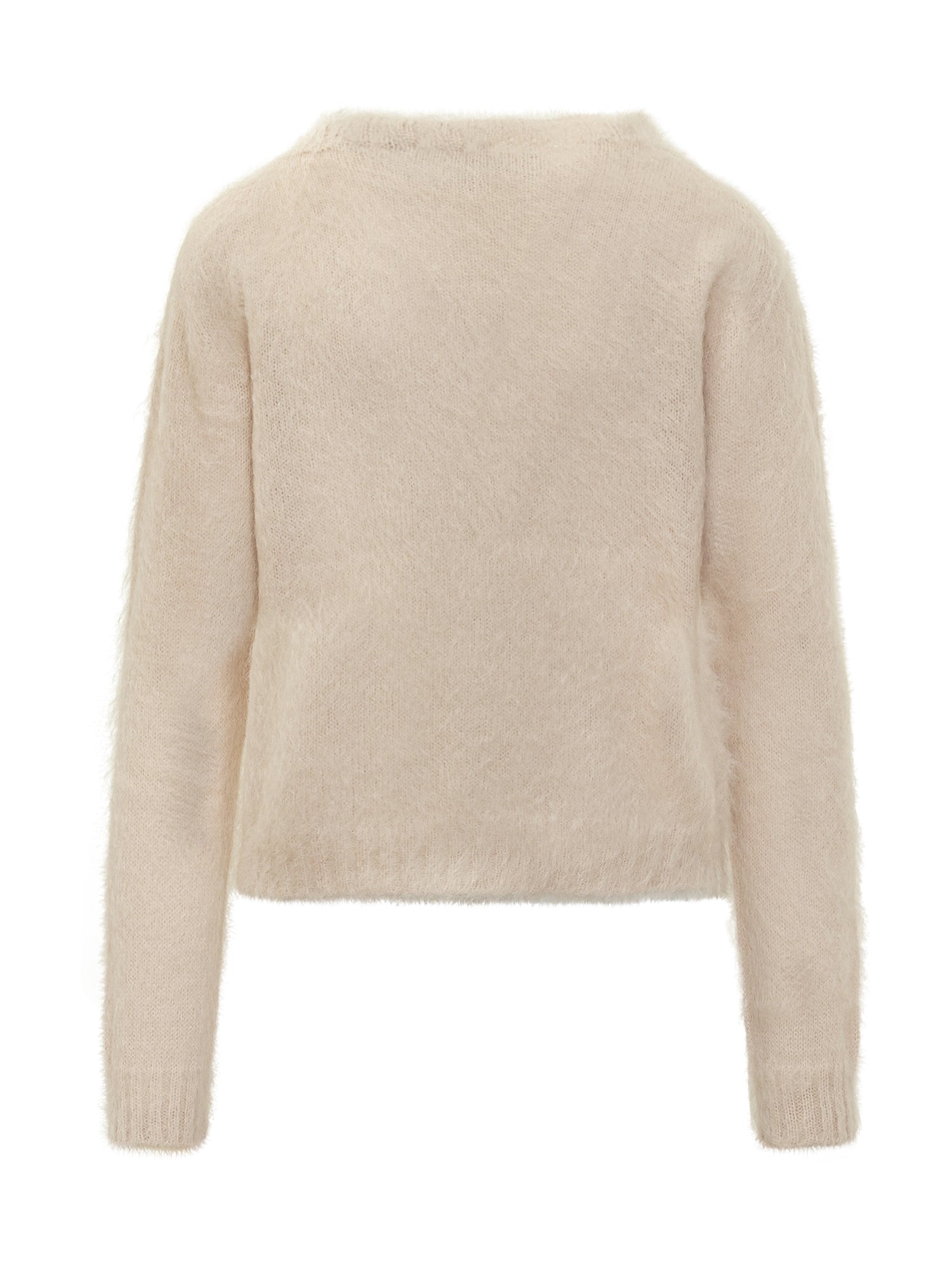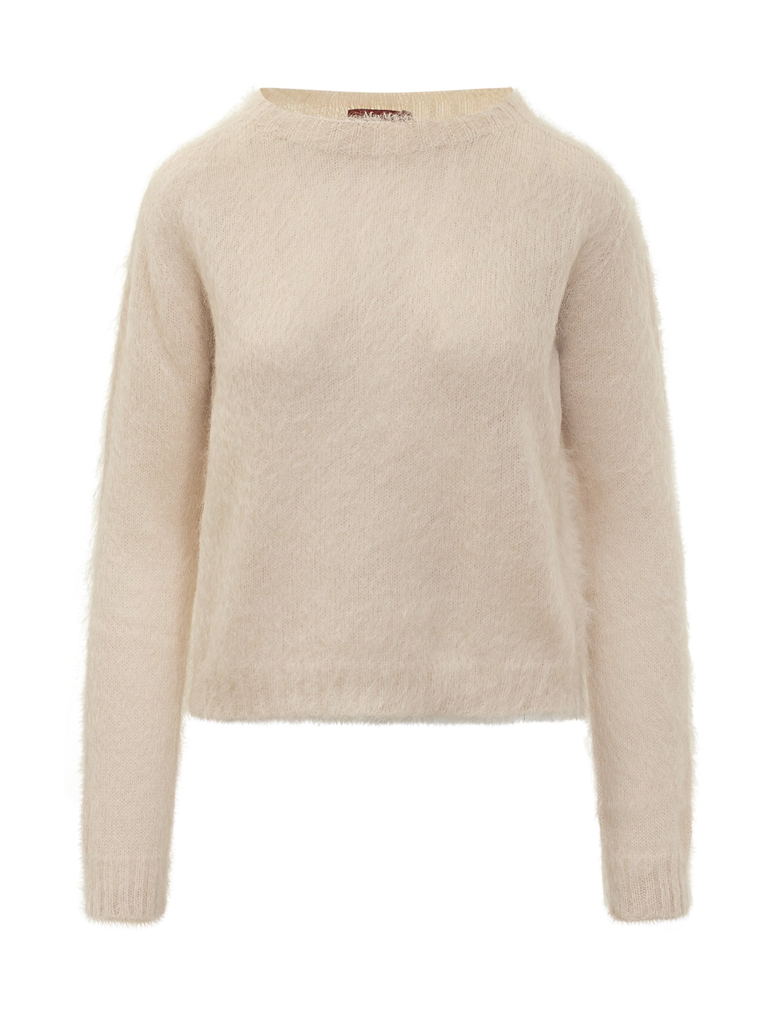 Max Mara Studio sweater in soft ivory mohair. Minimal and refined, offering warmth and lightness.