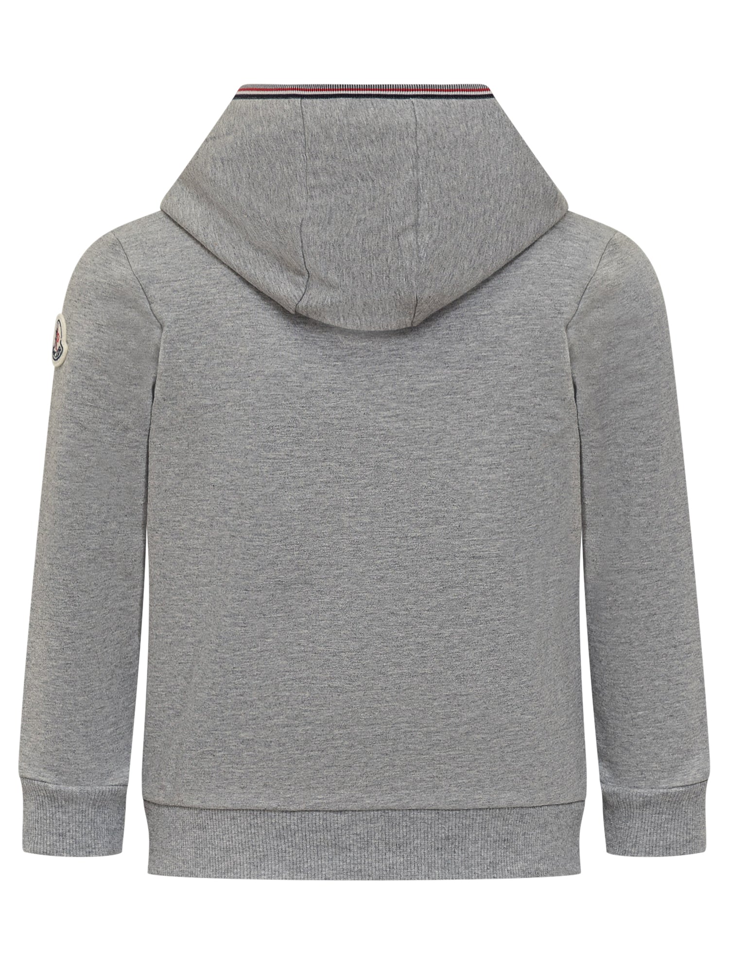 Long-sleeved hooded sweatshirt. Zipper closure. Ribbed hems. Two side pockets. Logo patch on sleeve.