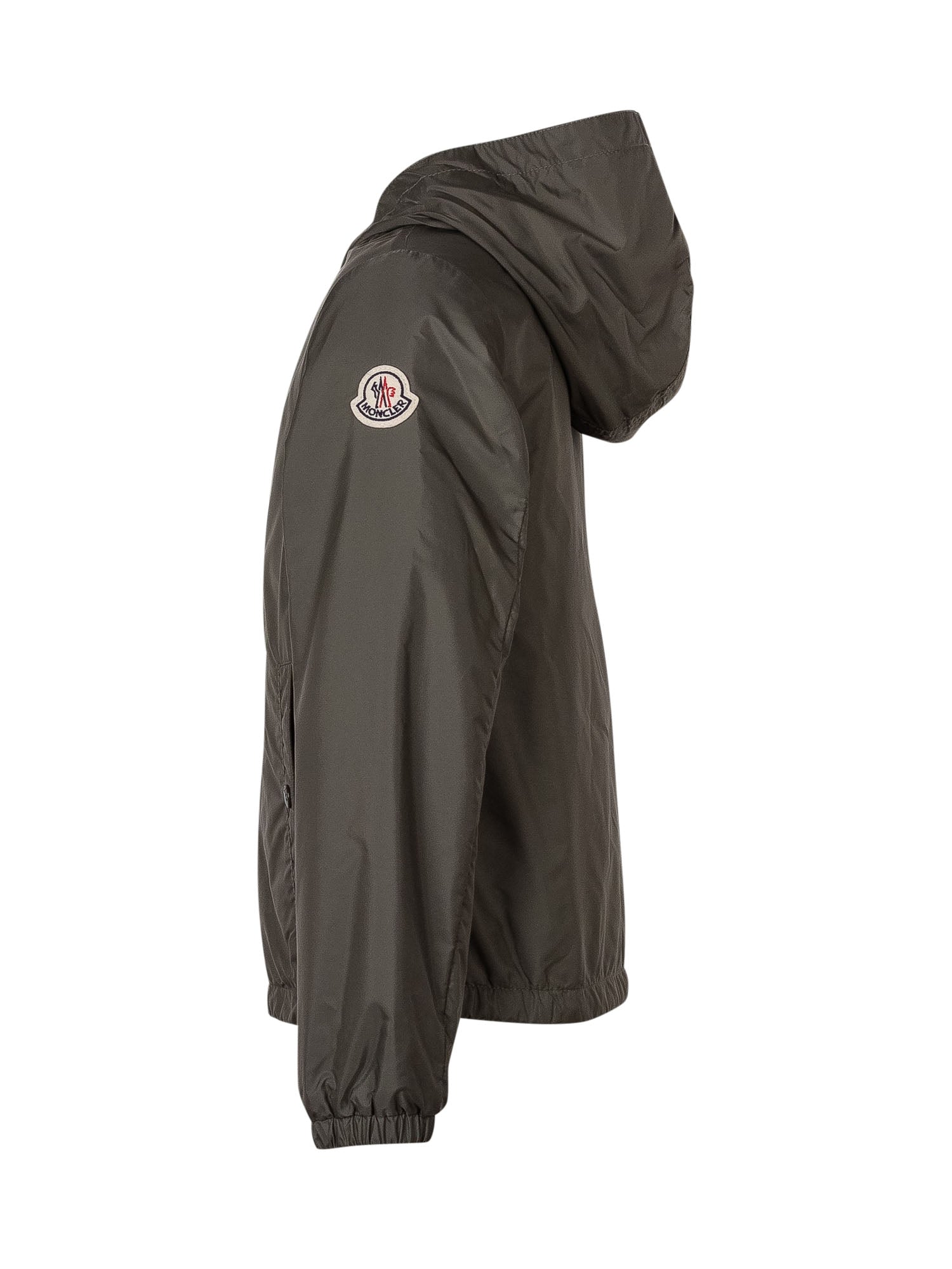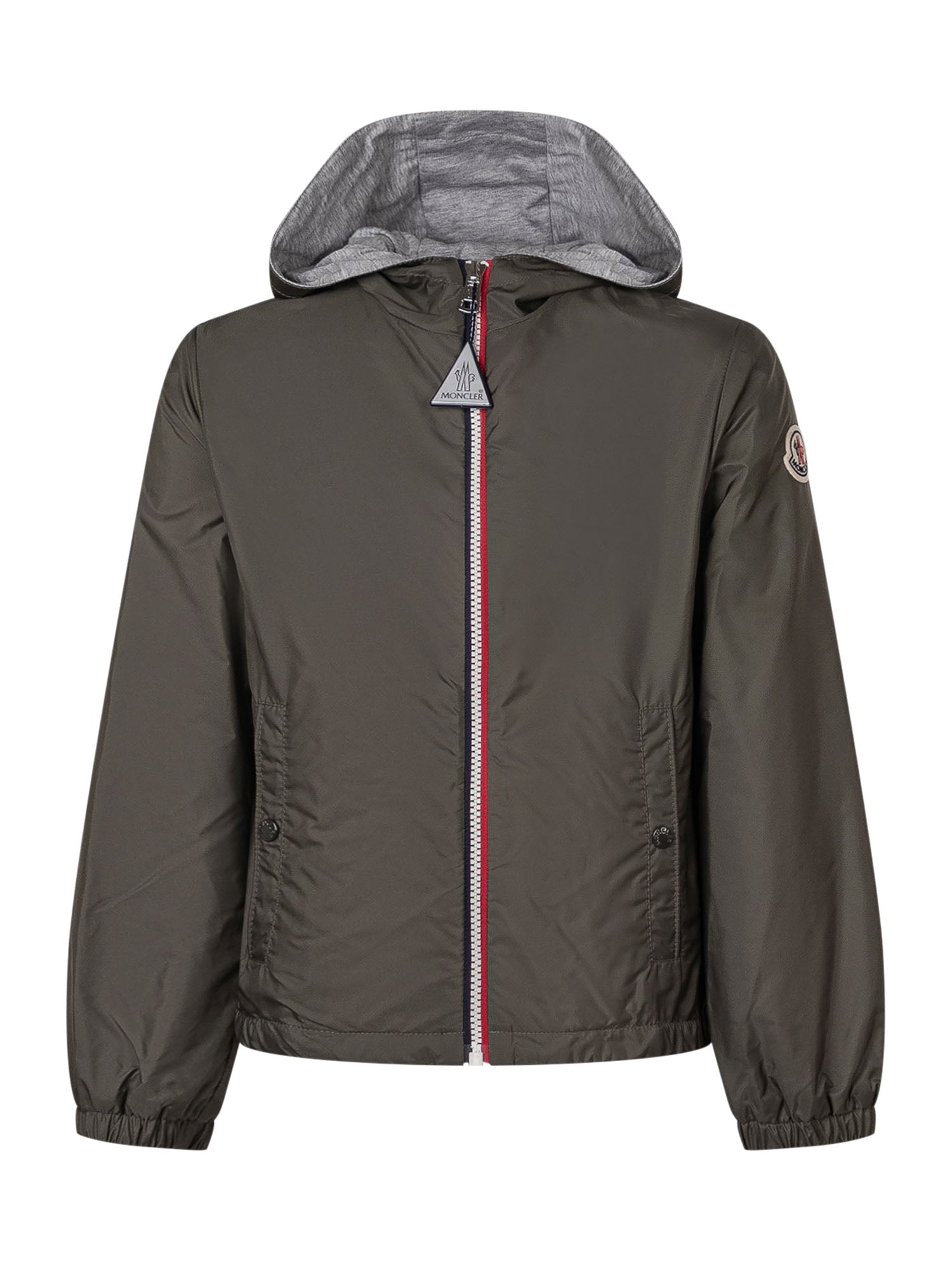 Jacket with hood, front zip closure, side pockets and decorative stripe detail on zip