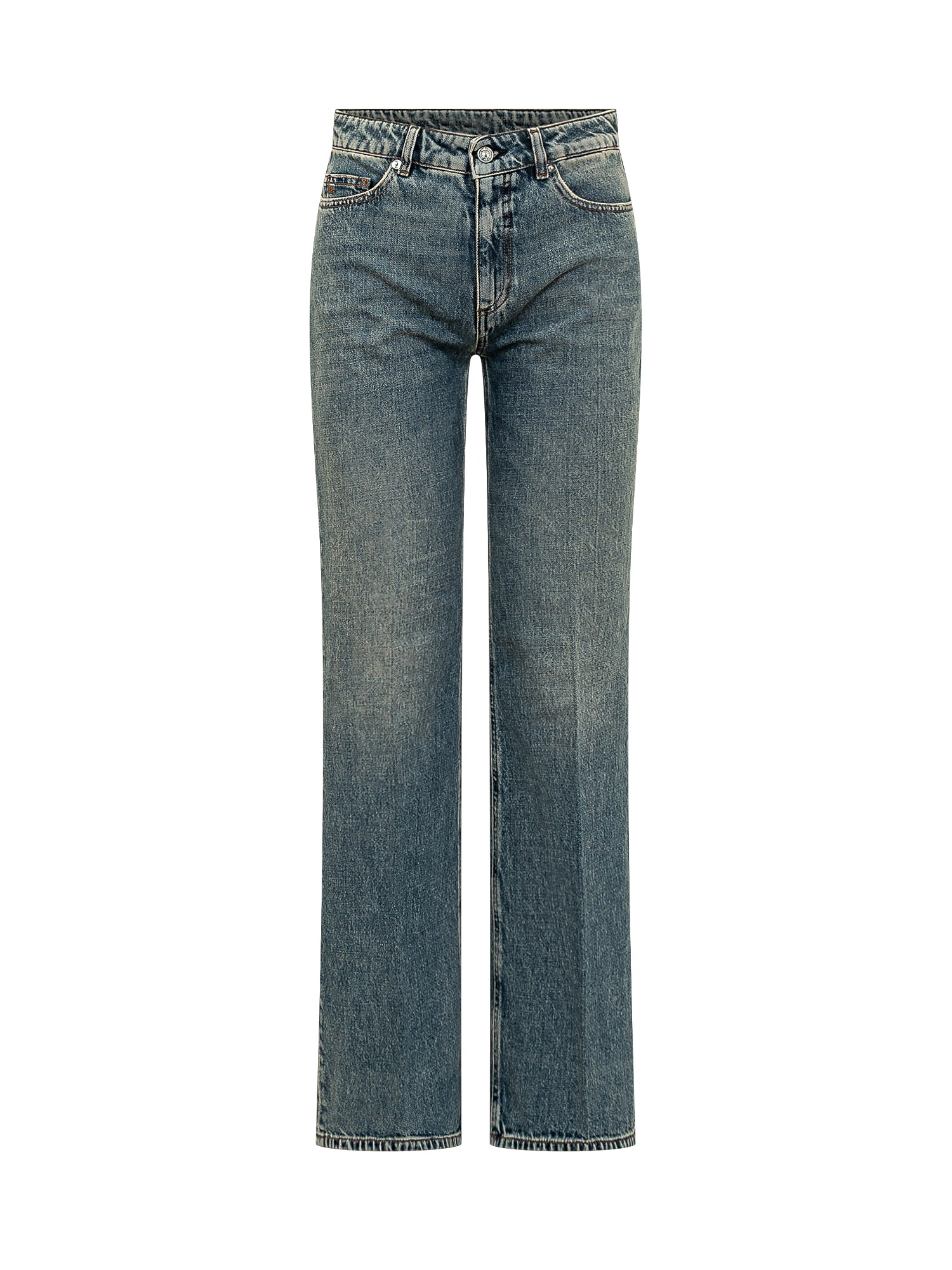 High rise pants with flared hem. Clean design with front closure and side pockets. Elongated feminine silhouette suited for elegant and contemporary looks.