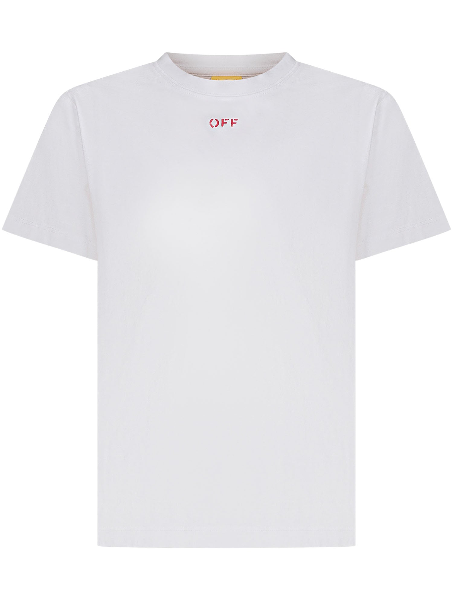 Short sleeve crewneck T-shirt with small contrasting red OFF logo on chest, clean and modern design